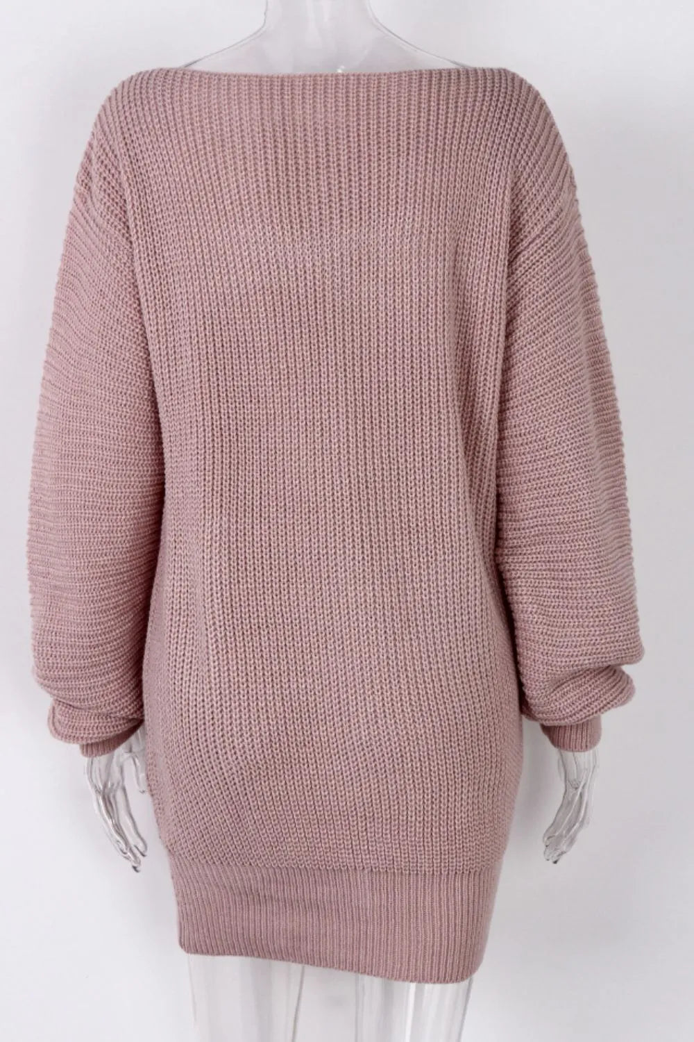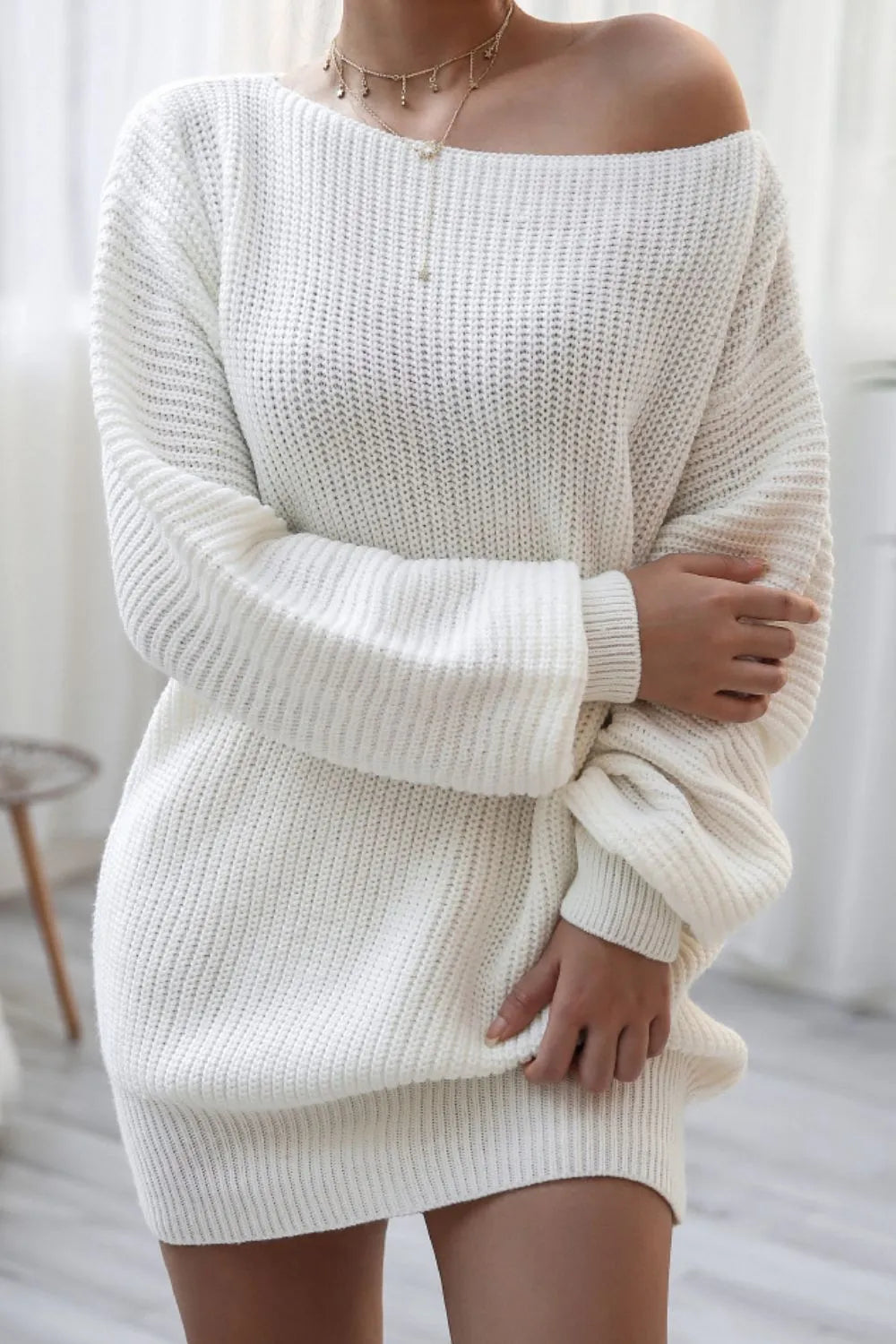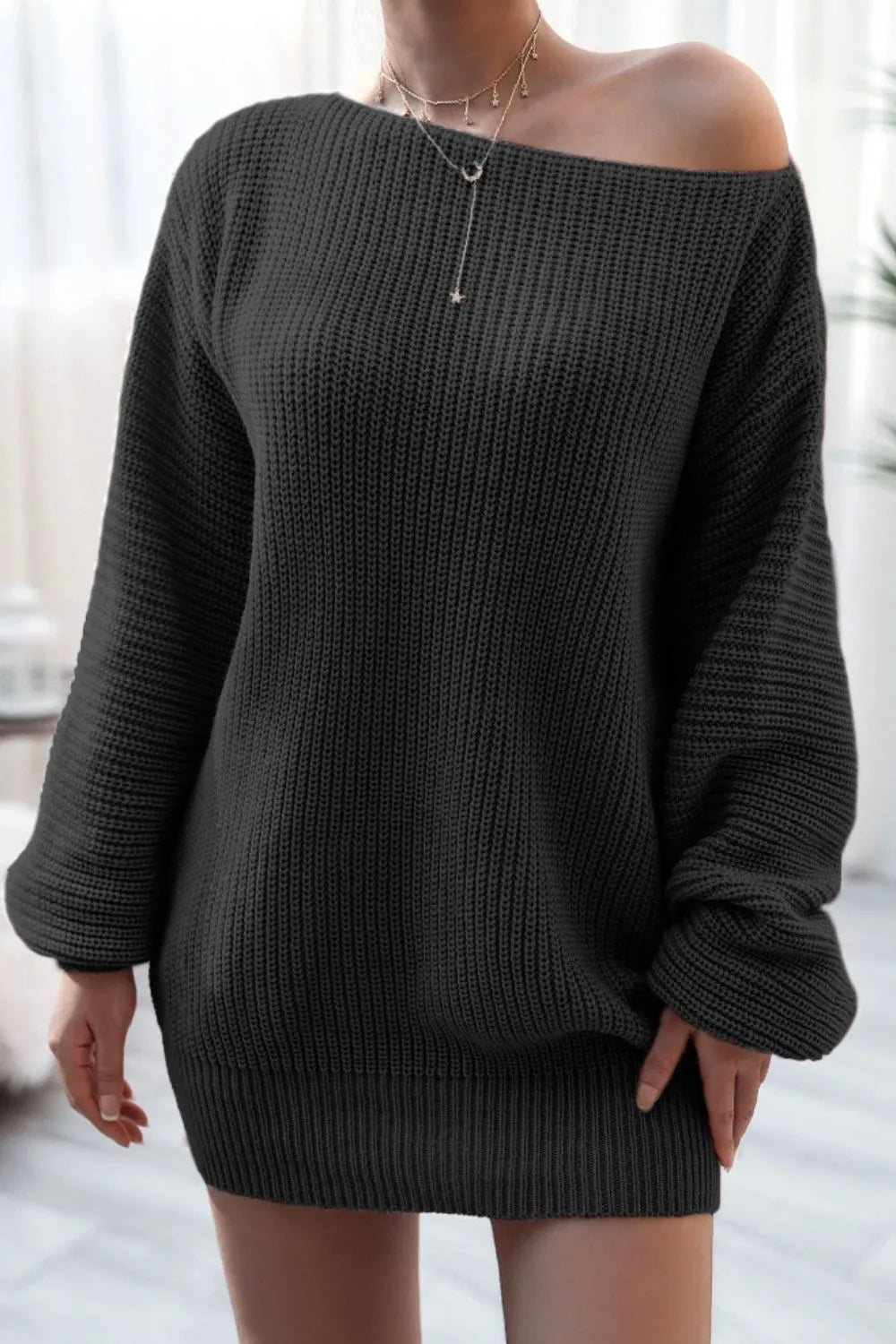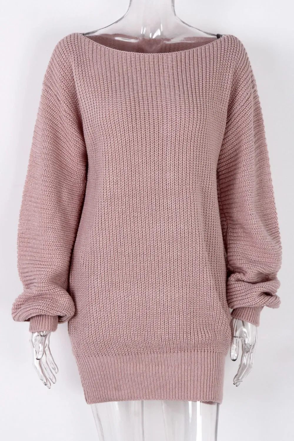 Velste Boat Neck Long Sleeve Mini Sweater Dress
