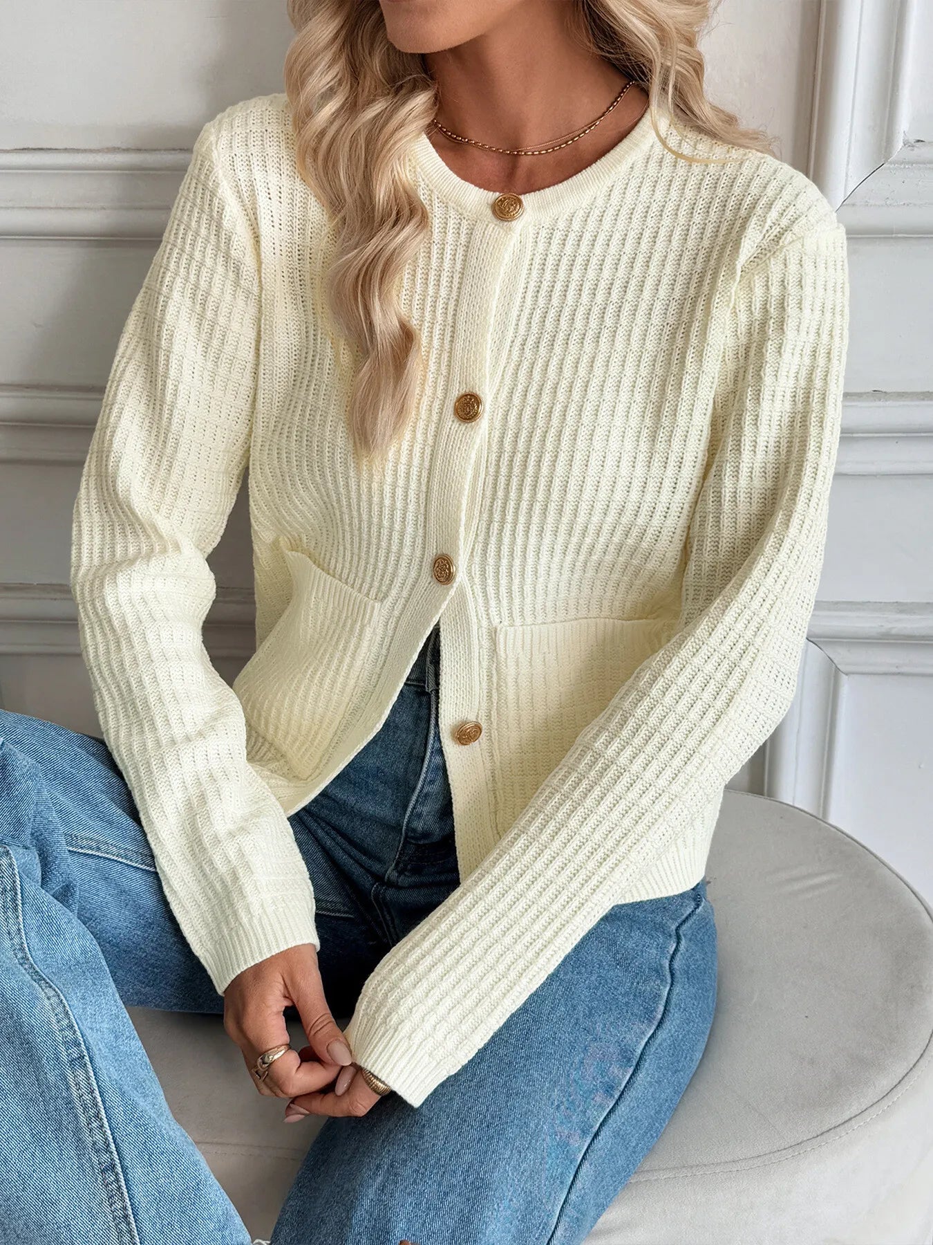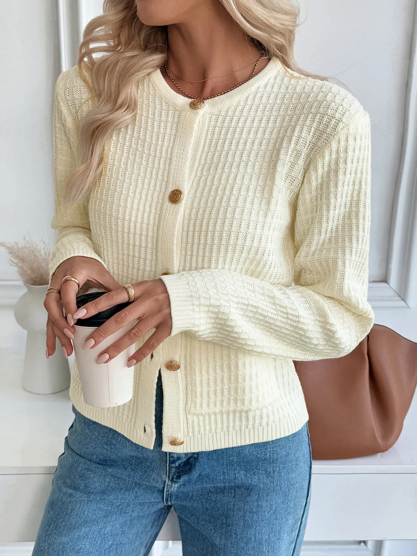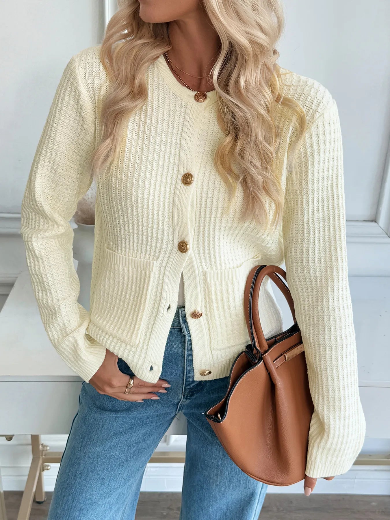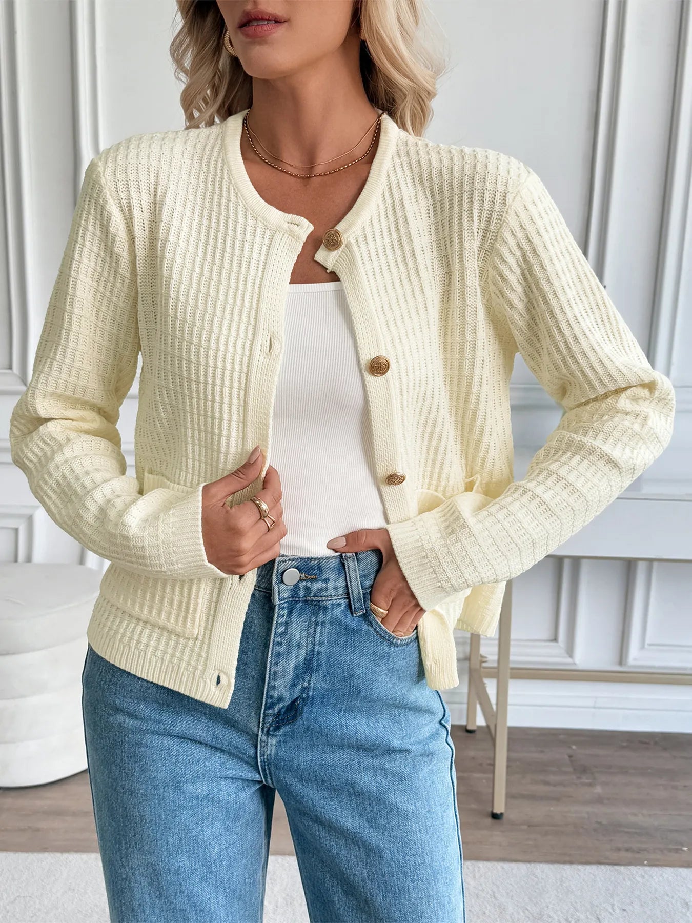 Button-Up Long Sleeve Cardigan with Pockets