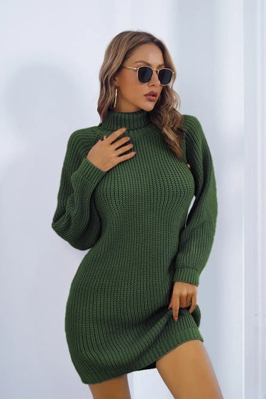 Velste Buttoned Turtleneck Long Sleeve Sweater Dress