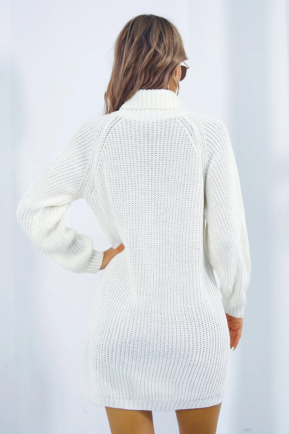 Buttoned Turtleneck Long Sleeve Sweater Dress