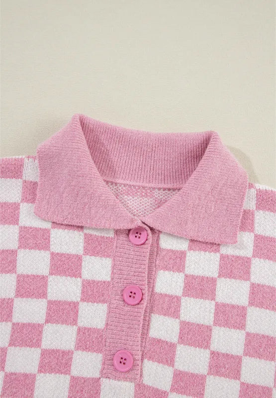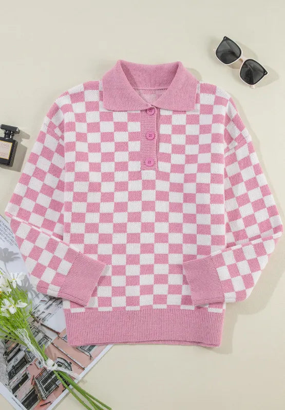 Velste Checkered Collared Neck Long Sleeve Sweater