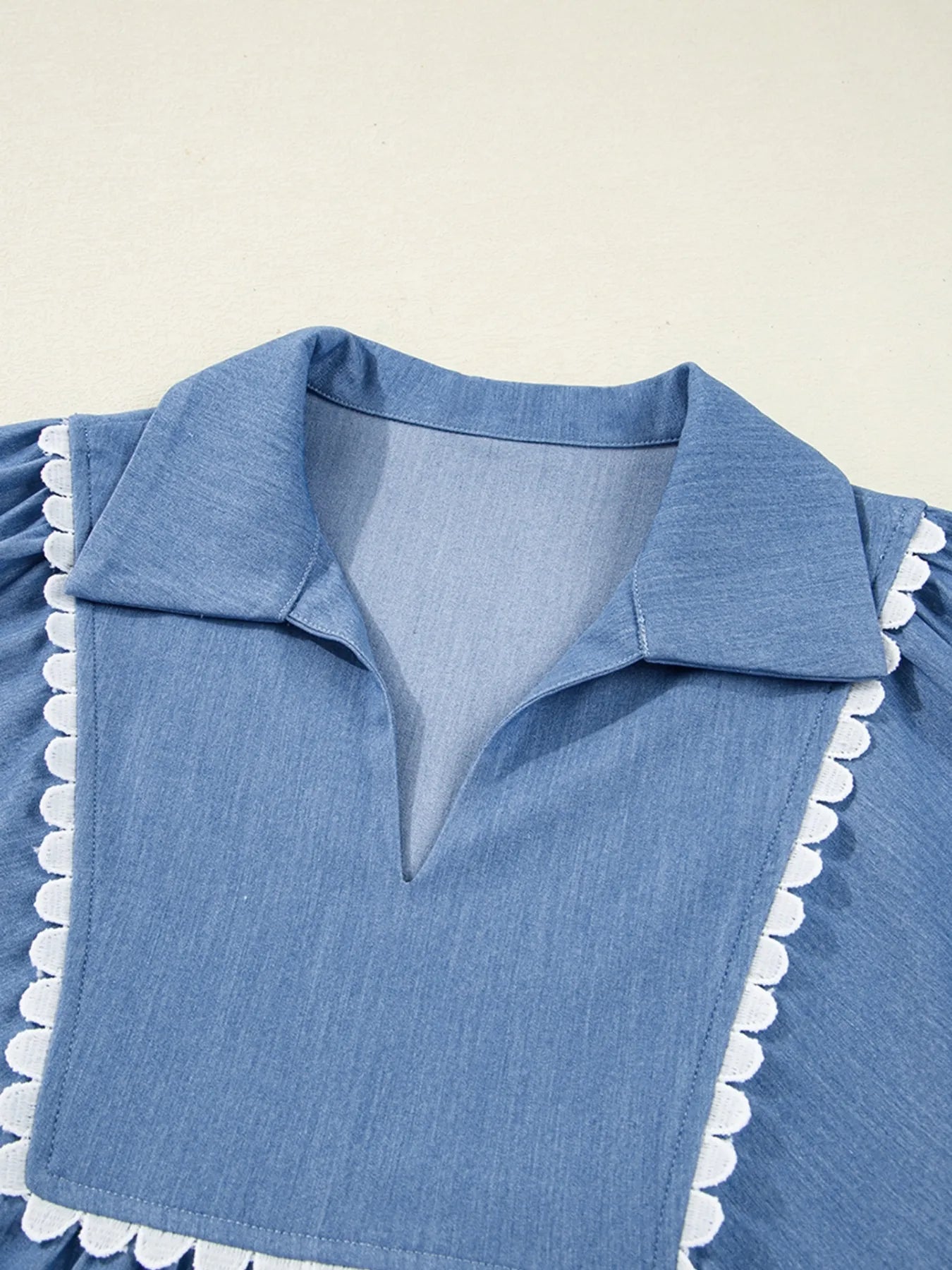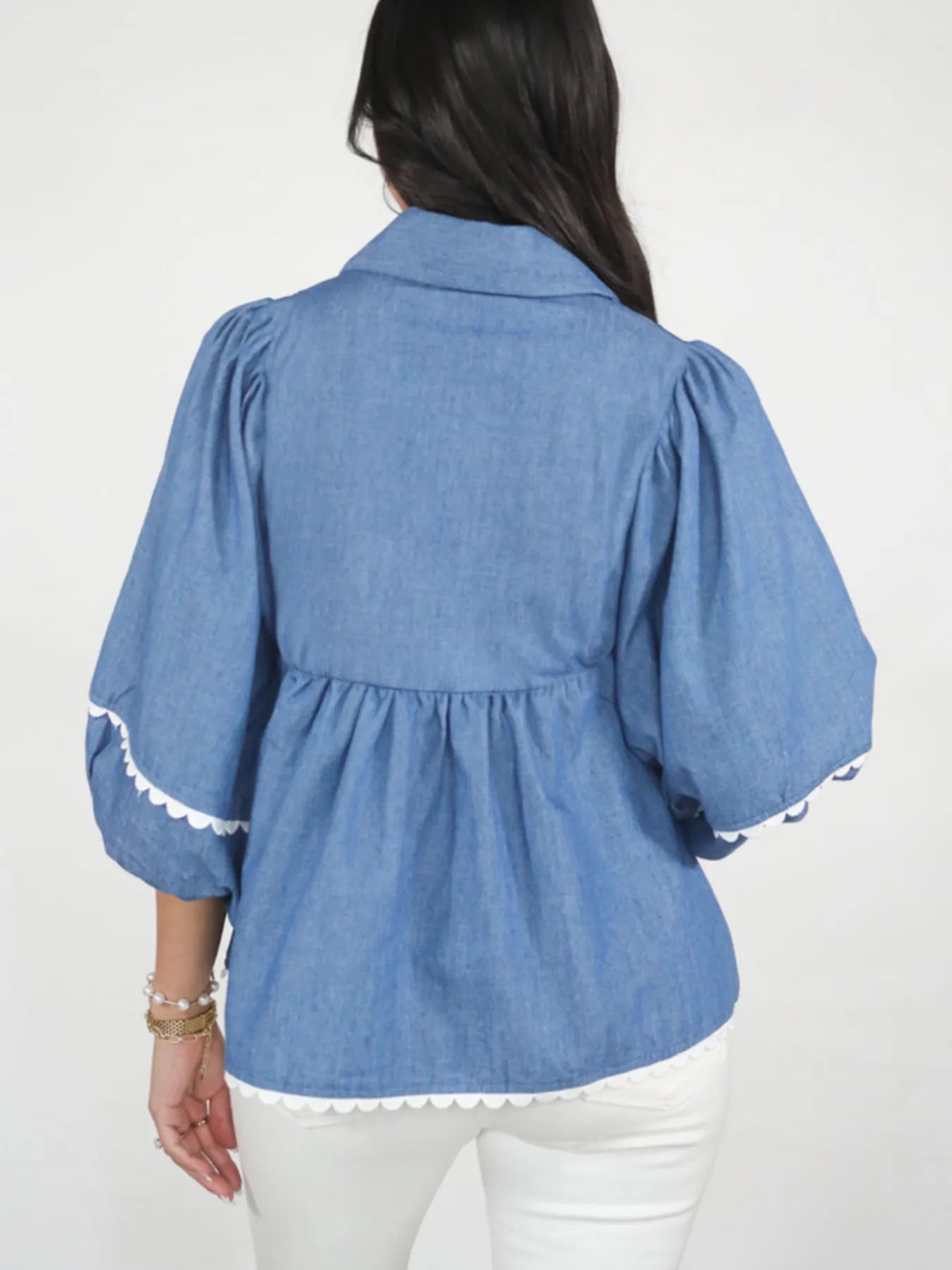 Velste Collared Neck Contrast Trim Balloon Sleeve Blouse