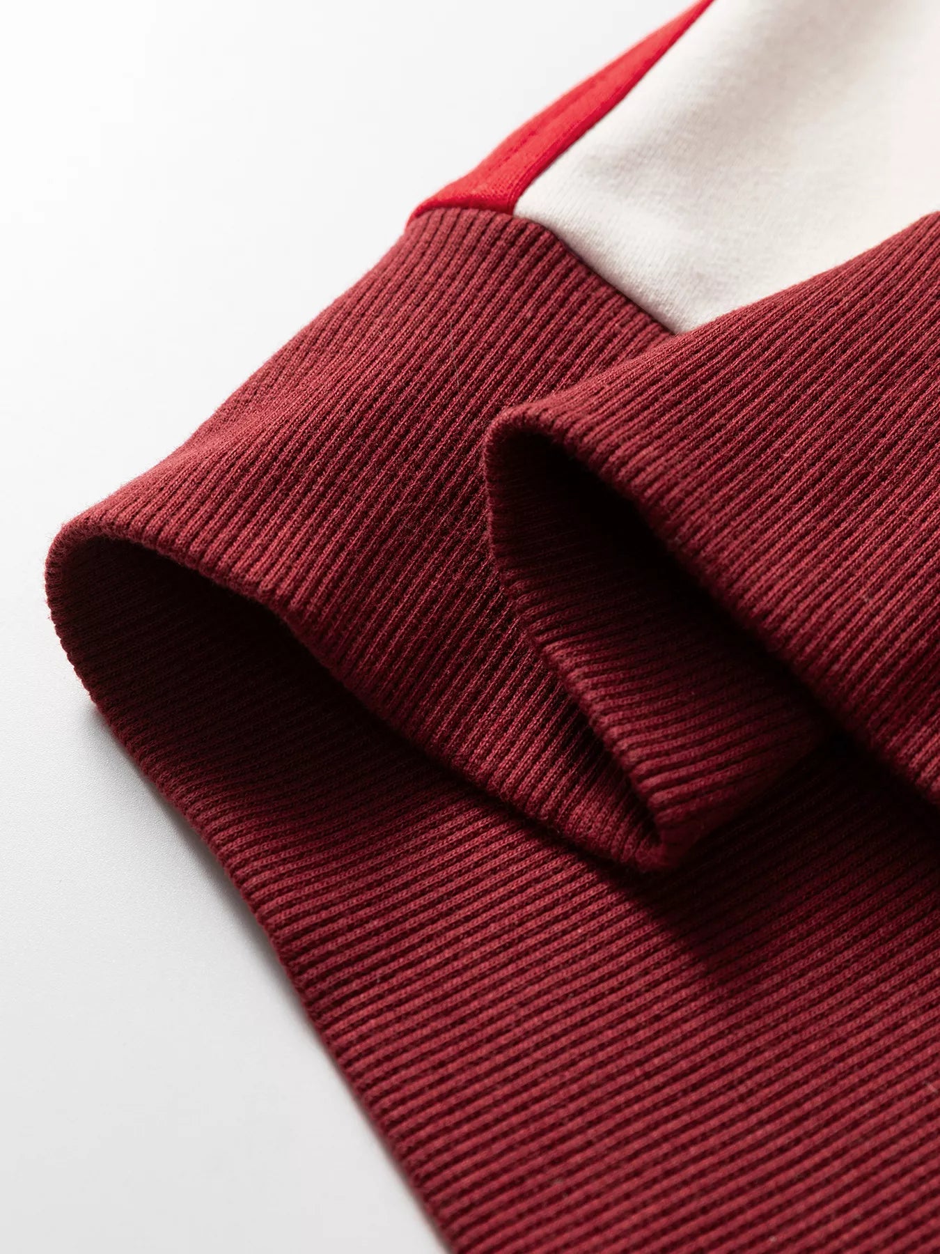 Velste Color Block Patchwork Snap Button Oversize Hoodie