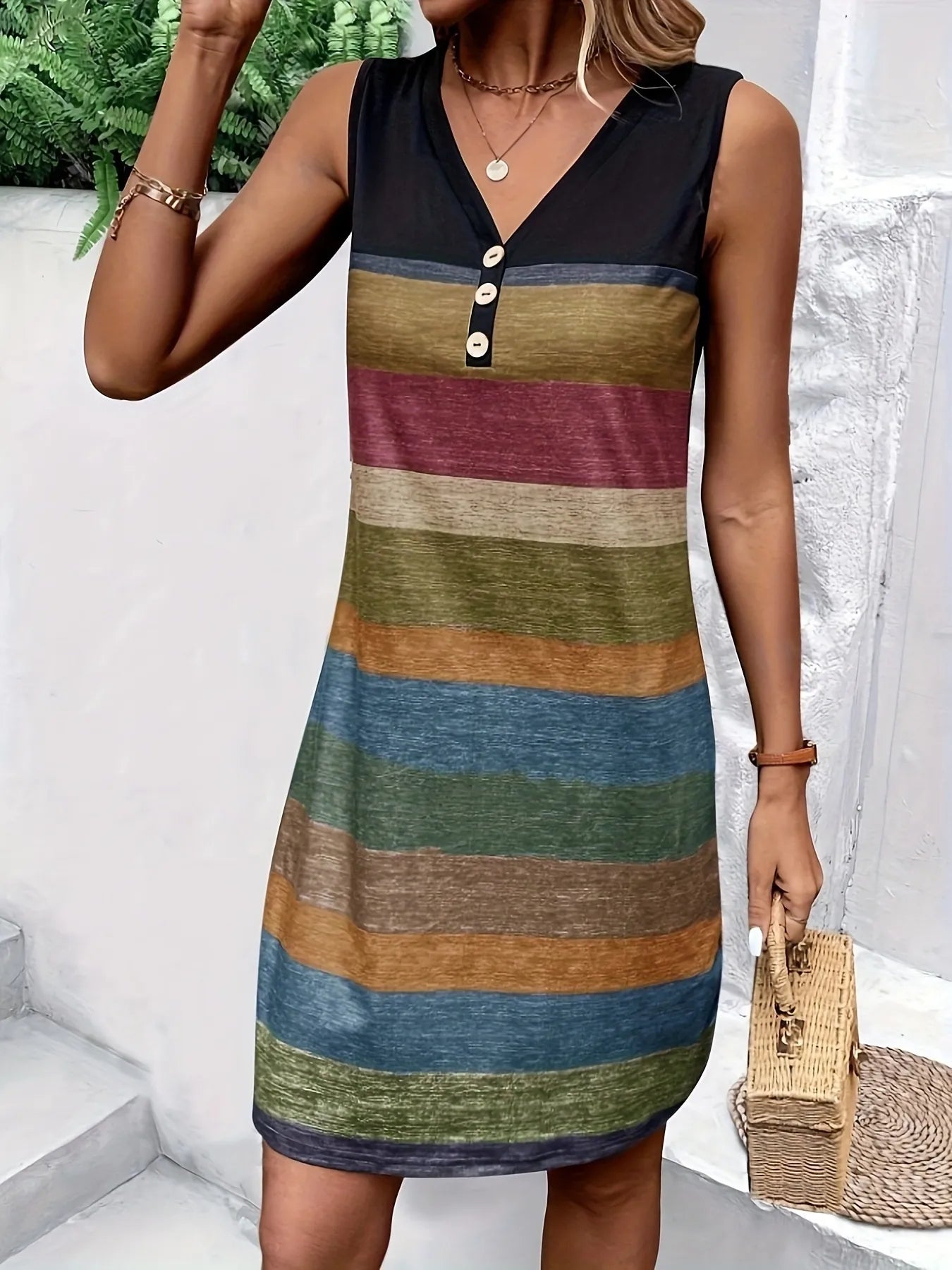 Velste Color Block Sleeveless V-Neck Tank Dress