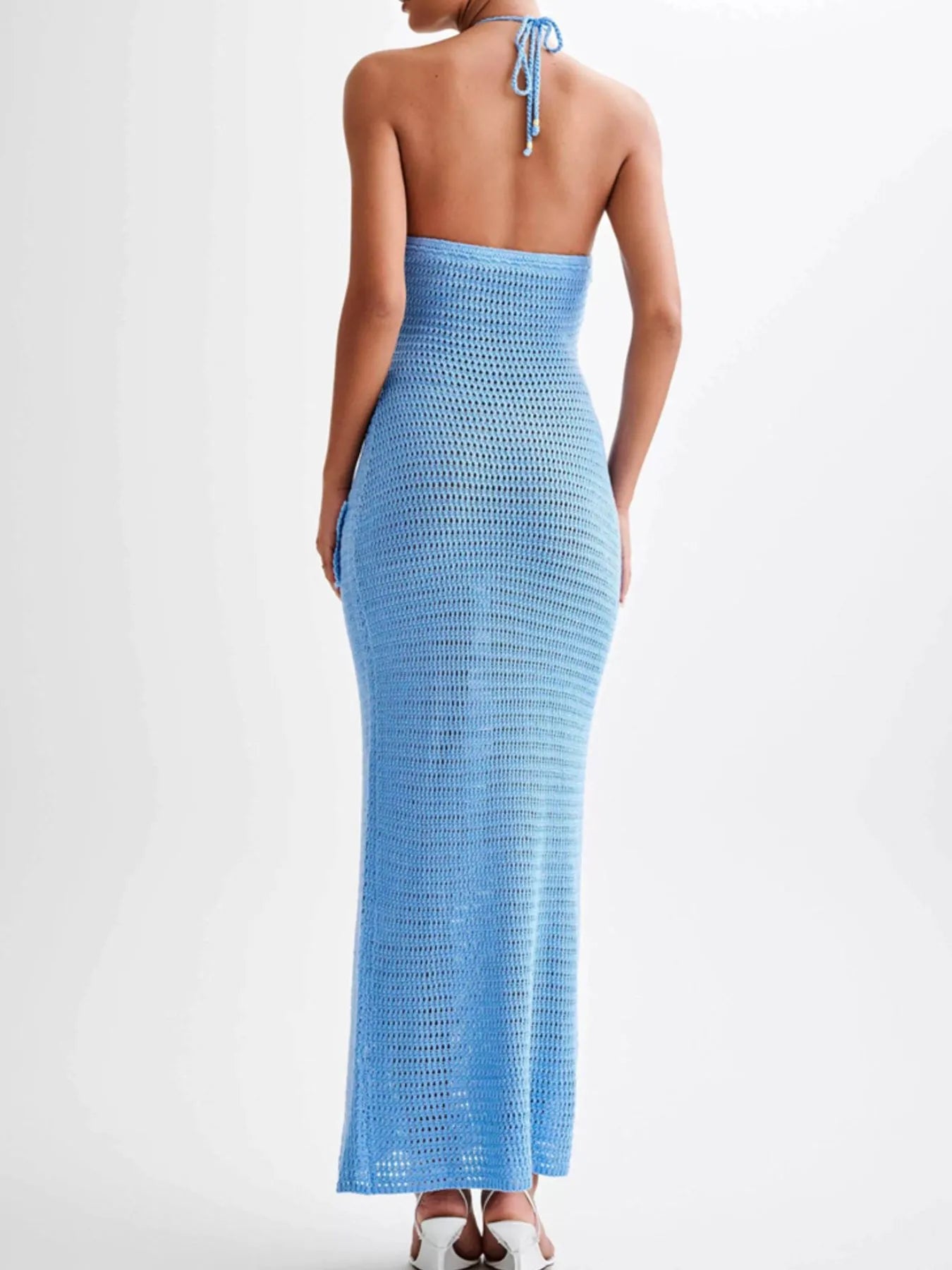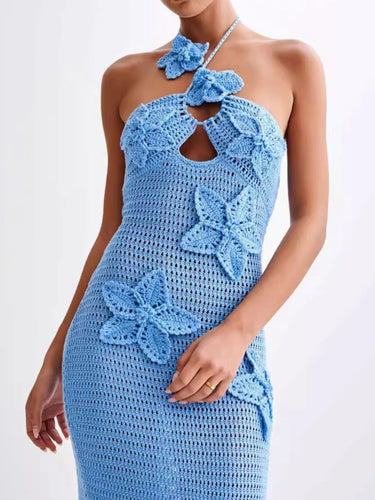 Velste Crochet Floral Halter Knit Cover Up Dress