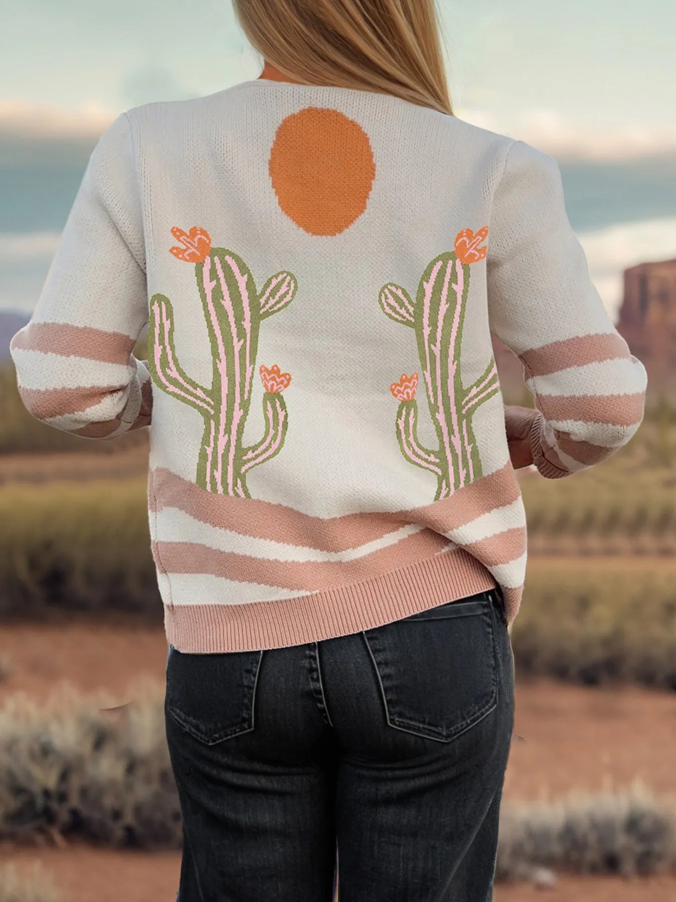 Desert Cactus Buttoned Front Sweater Cardigan