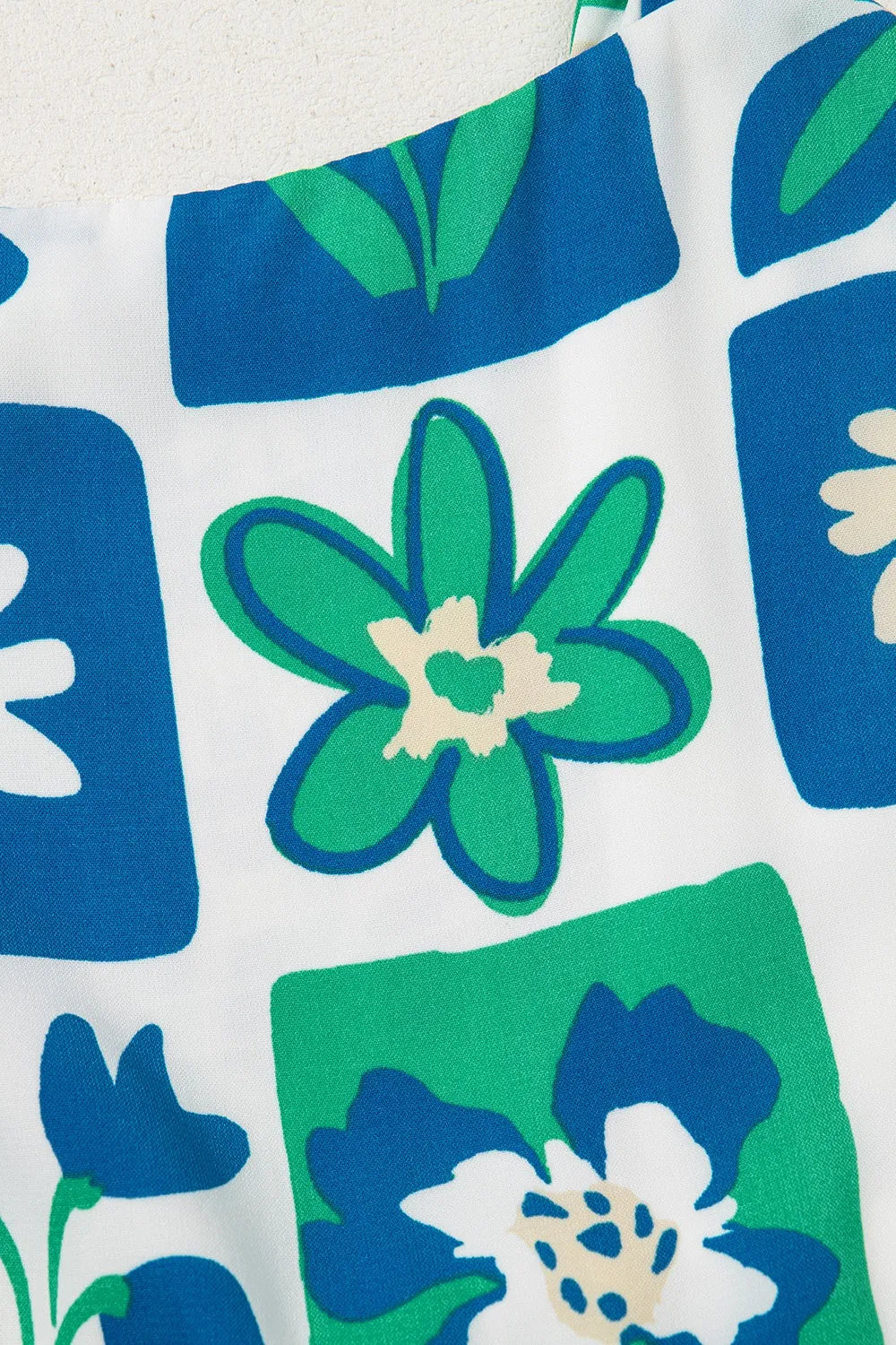 Velste Floral Mixed Pattern Ruffle Flutter Sleeve Buttoned Dress