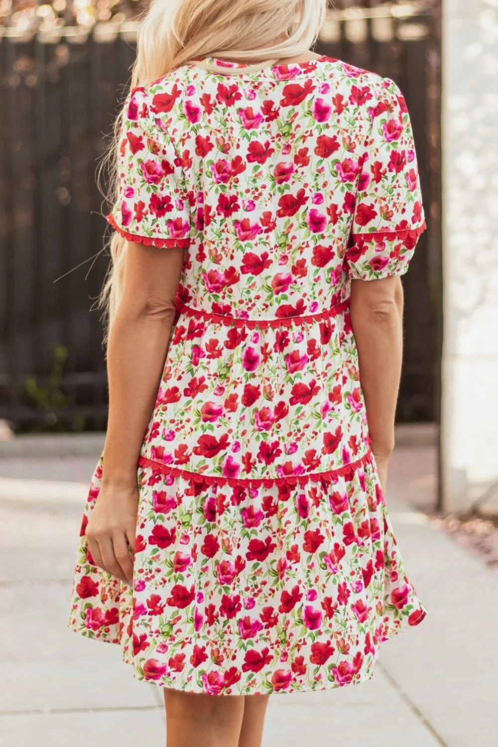 Floral Notched Short Sleeve Dress