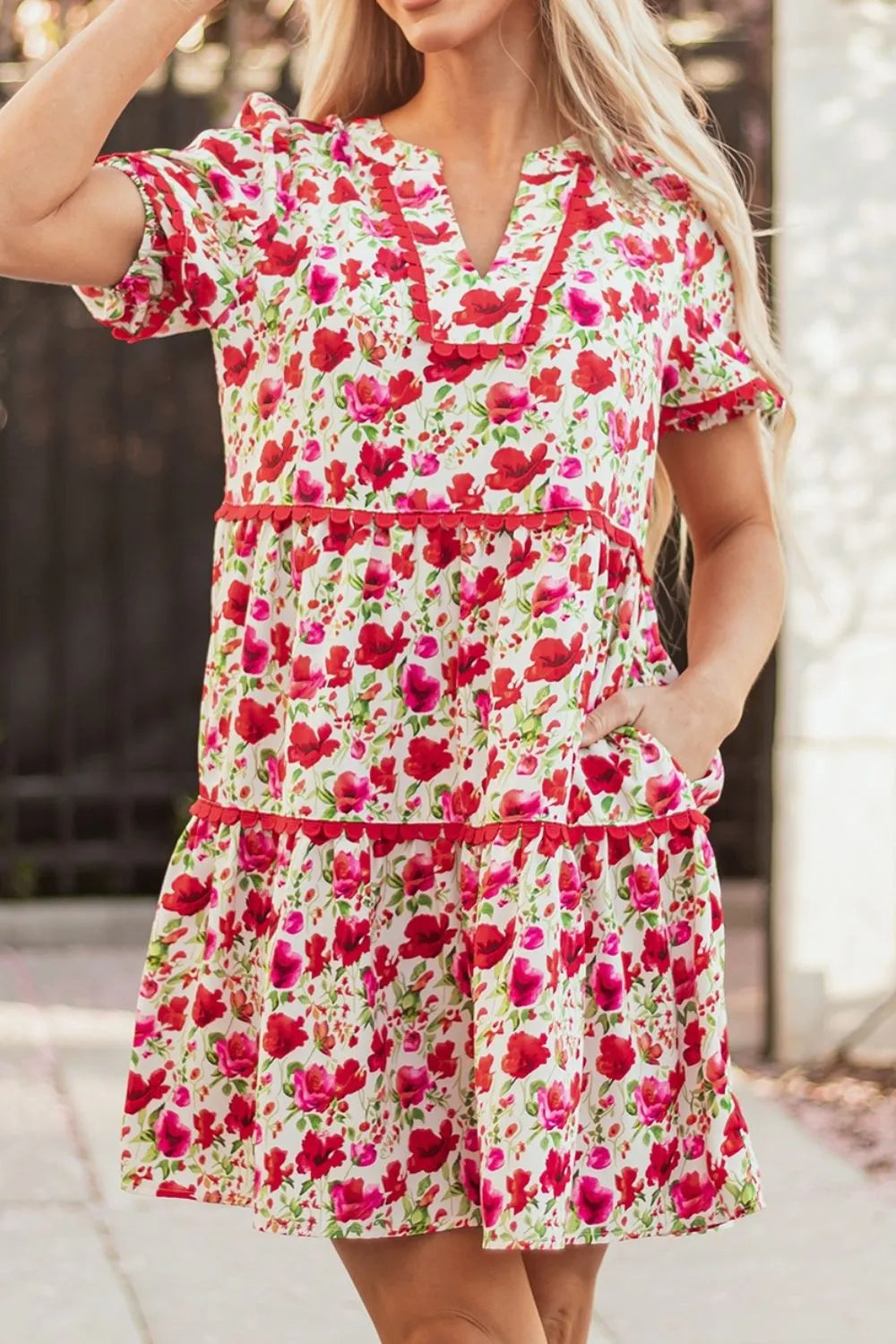 Velste Floral Notched Short Sleeve Dress