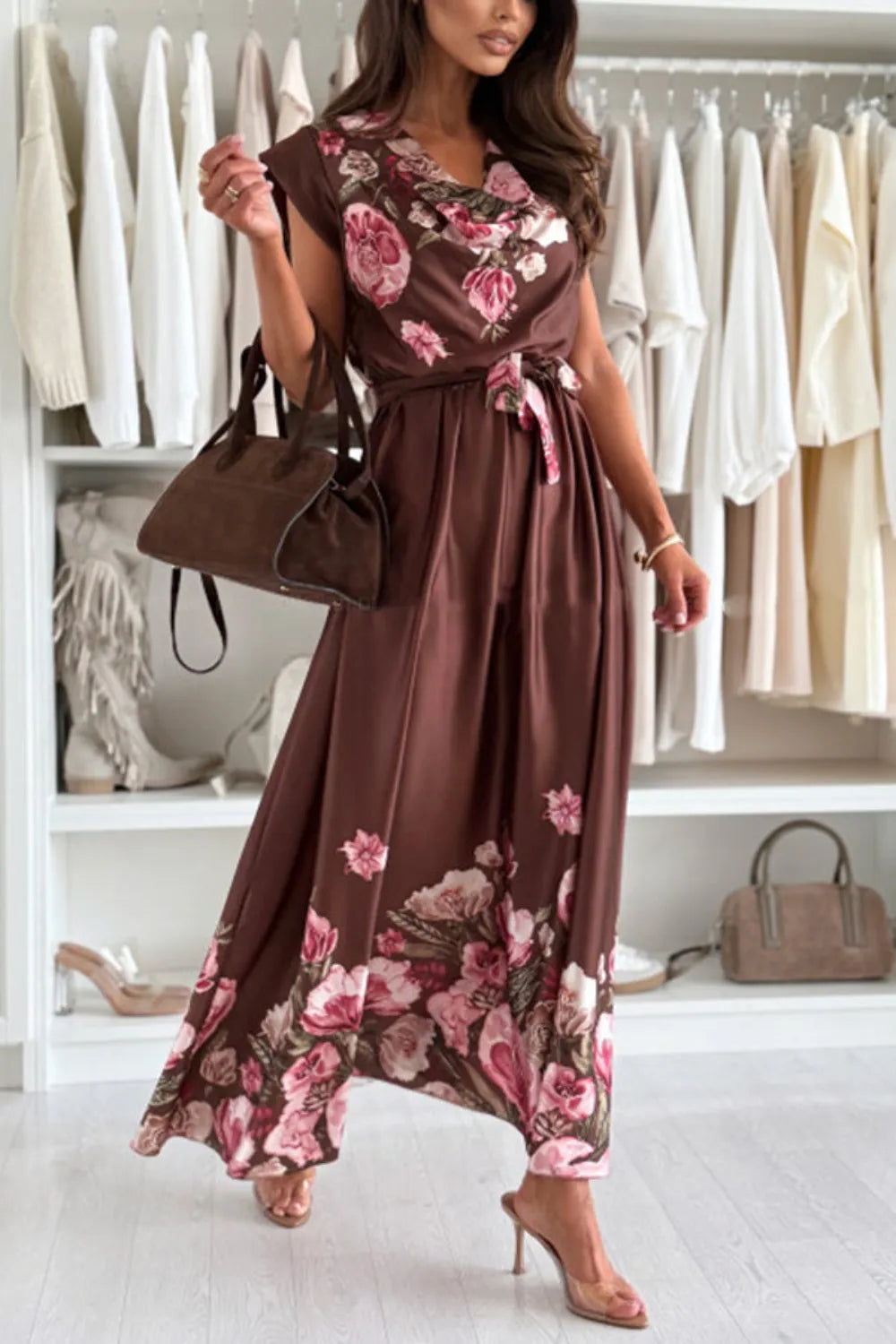 Velste Floral Print Cap Sleeve Dress with Belt
