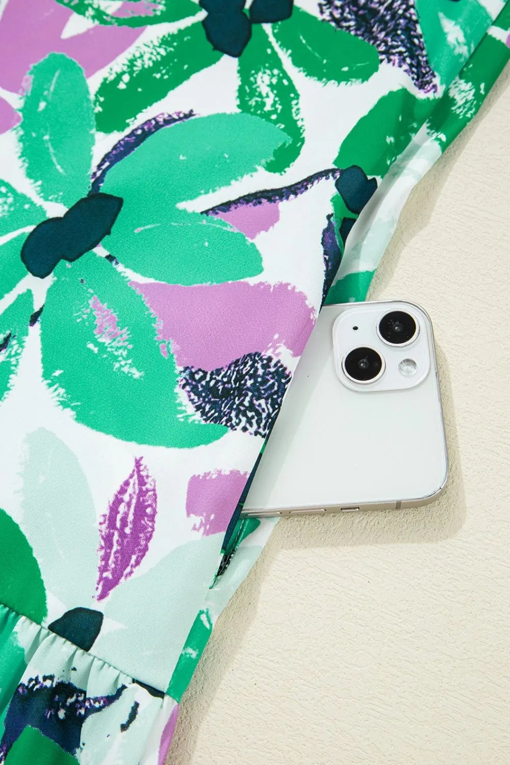 Velste Floral Print Shirred Square Neck Loose Fit Mini Dress