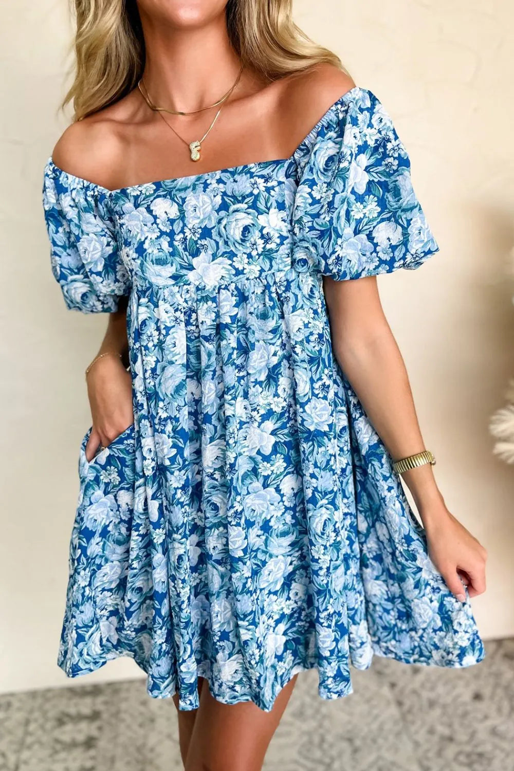 Velste Floral Puff Sleeve Babydoll Mini Dress