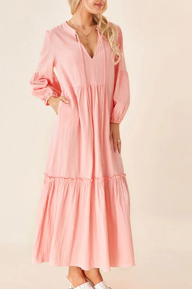 Velste Frill Tiered Tie Neck Long Sleeve Dress