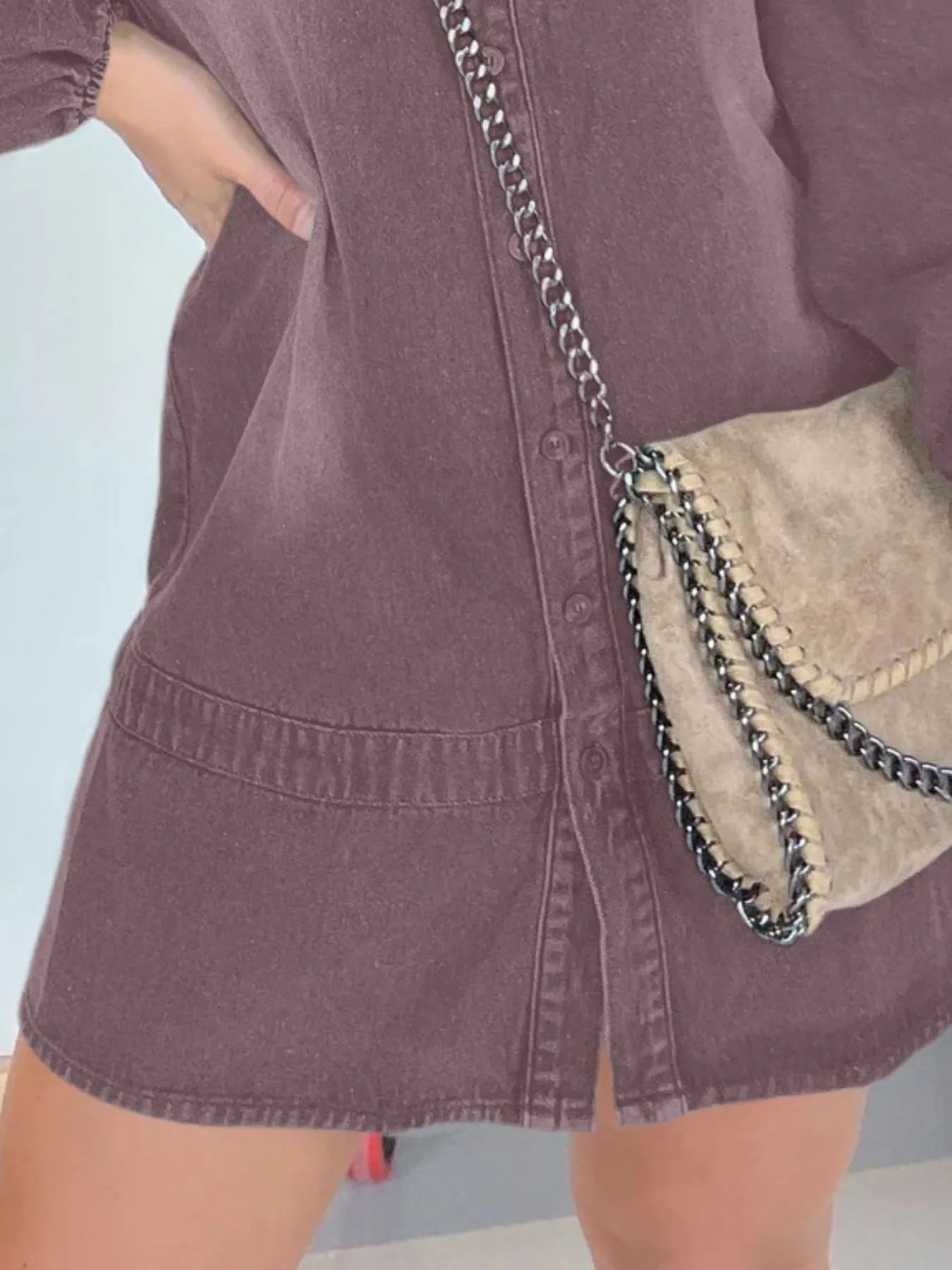 Velste Full Size Button Front Long Sleeve Denim Dress Plus Size