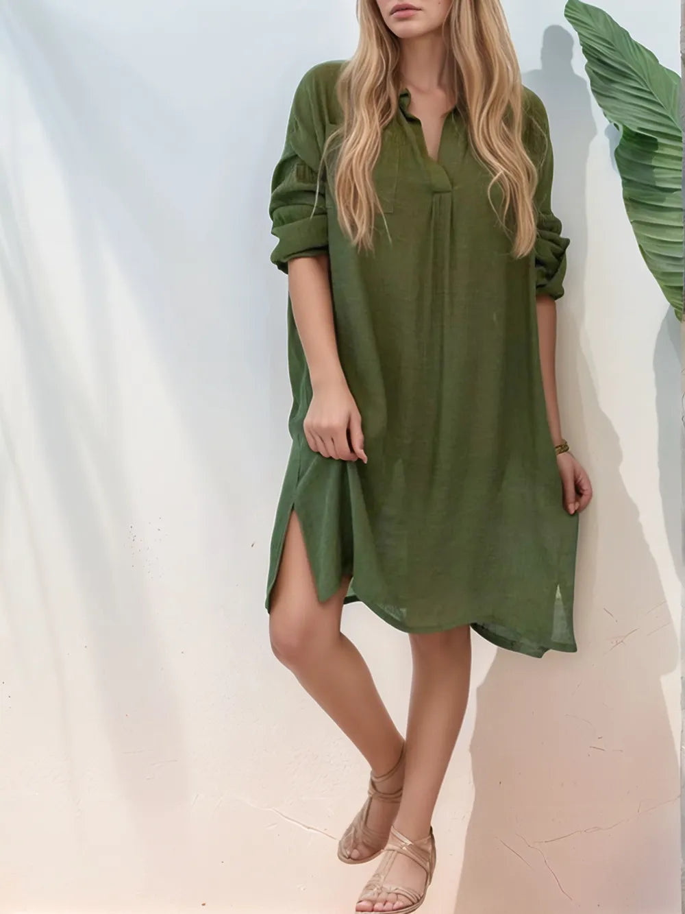 Full Size Side Slit Roll-Tab Sleeve Mini Shirt Dress Plus Size