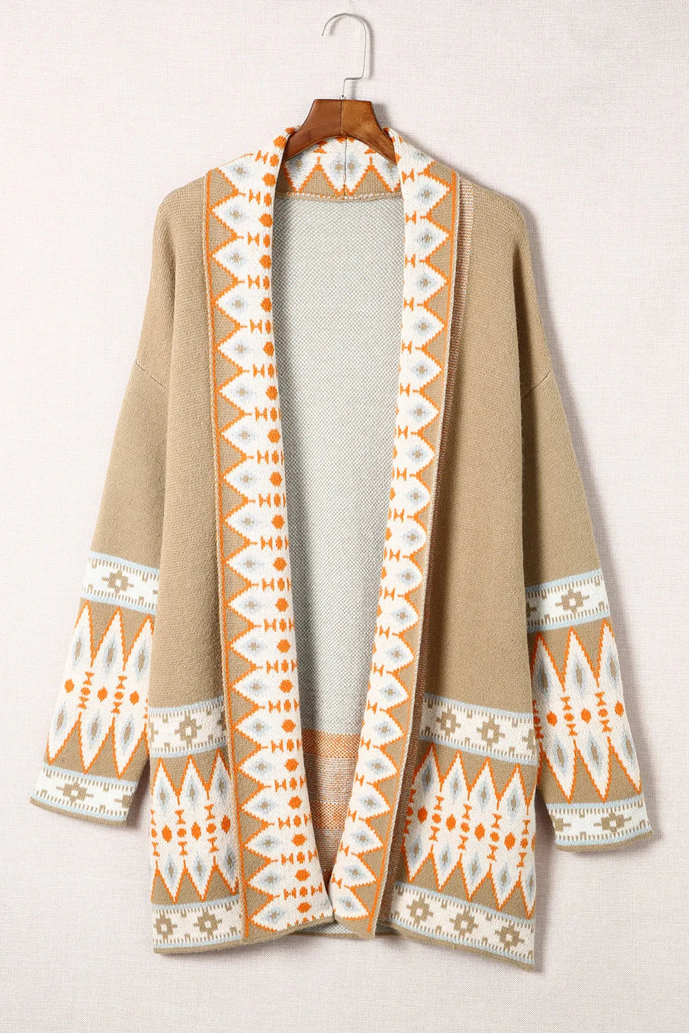 Geometric Open Front Long Sleeve Cardigan