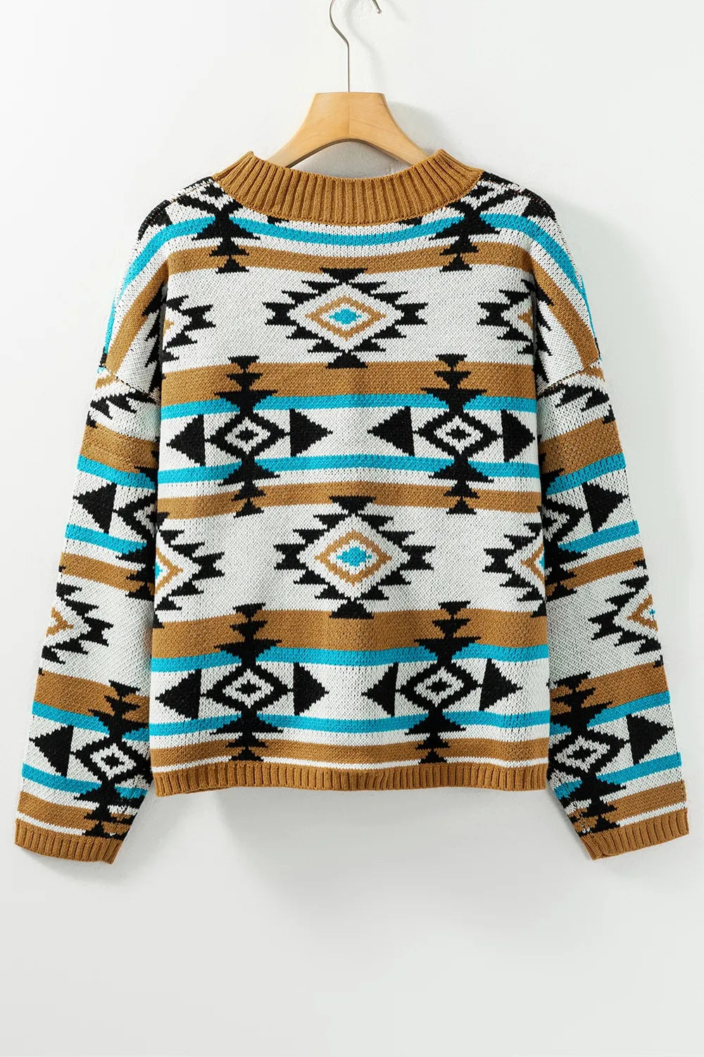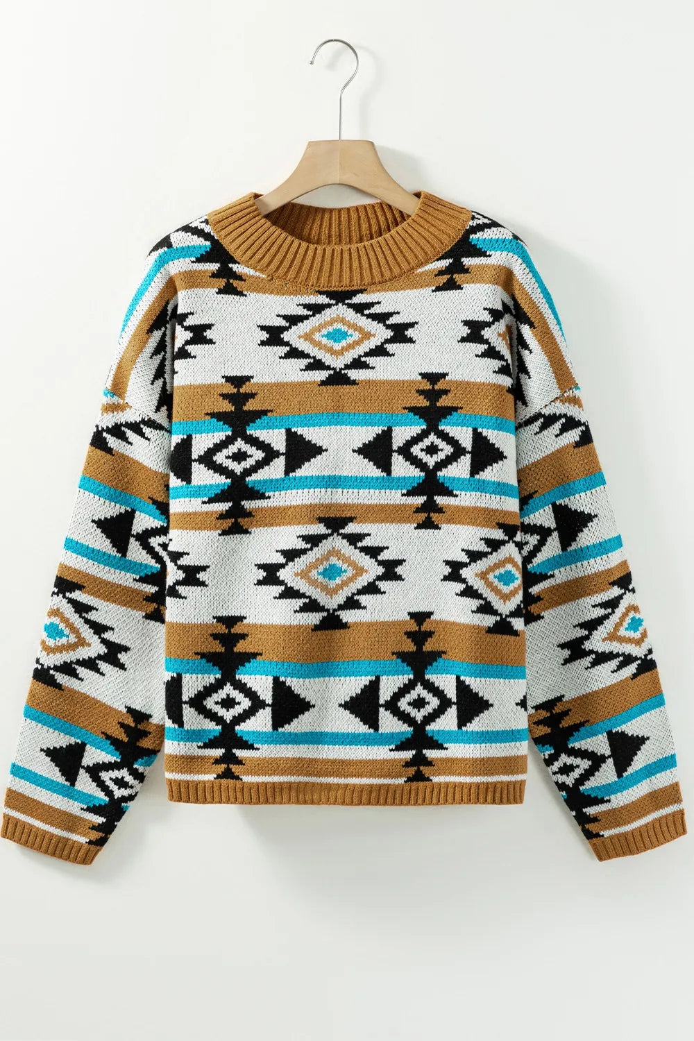 Velste Geometric Round Neck Long Sleeve Sweater