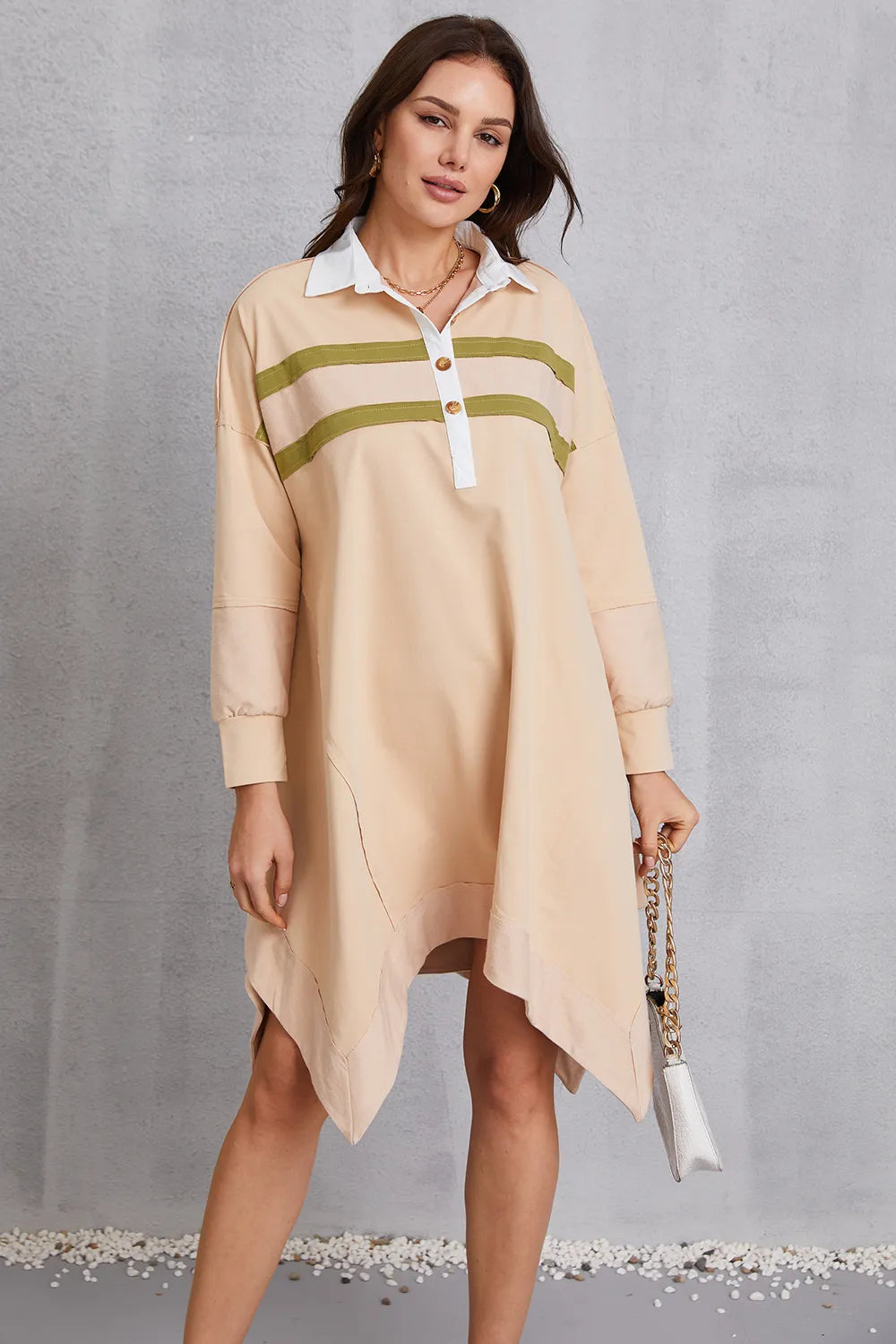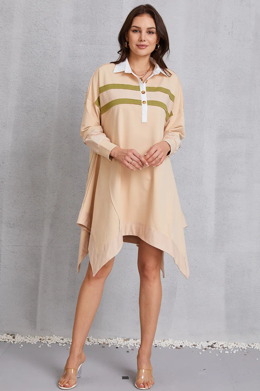 Velste Half Button Handkerchief Hem Dress
