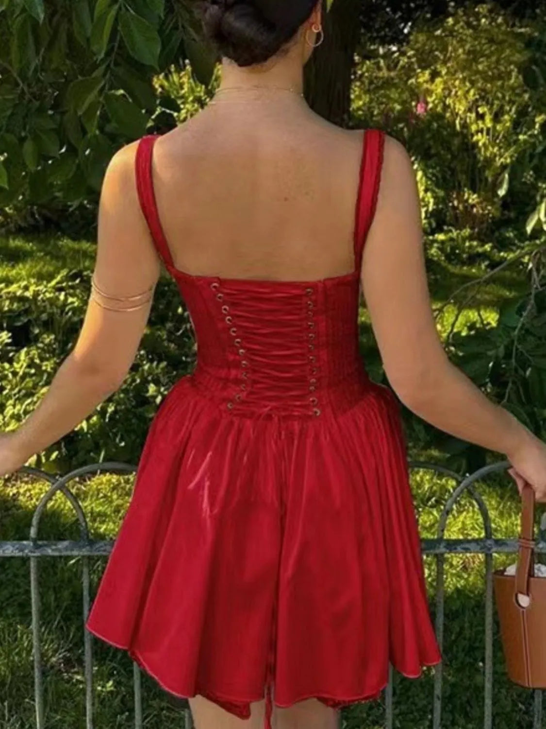 Lace Detail Lace Up Back Mini Dress