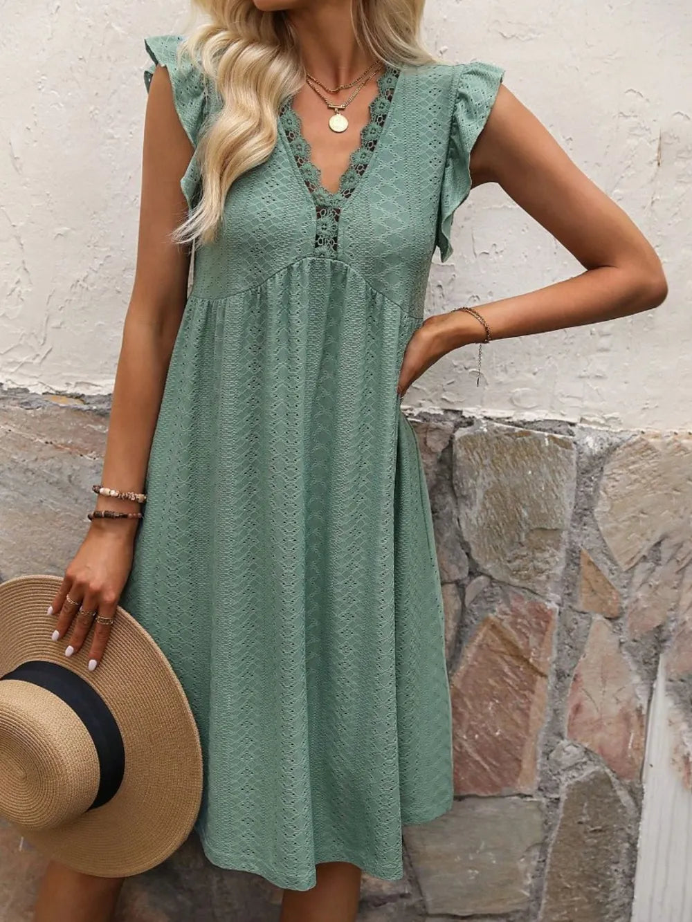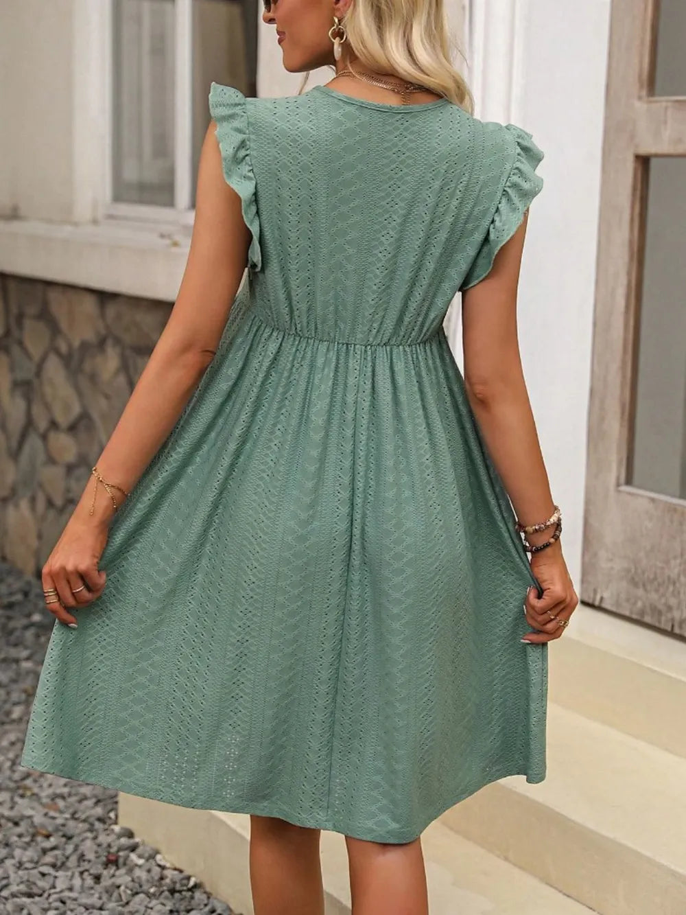 Velste Lace Detail Ruffled Eyelet Mini Dress