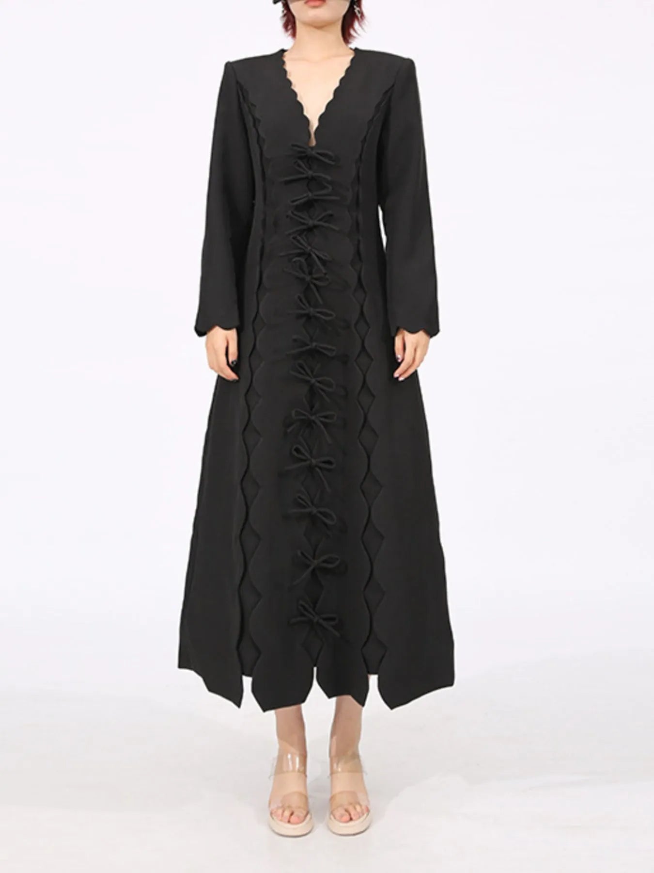 Long Sleeve Bow Front Midi Dress