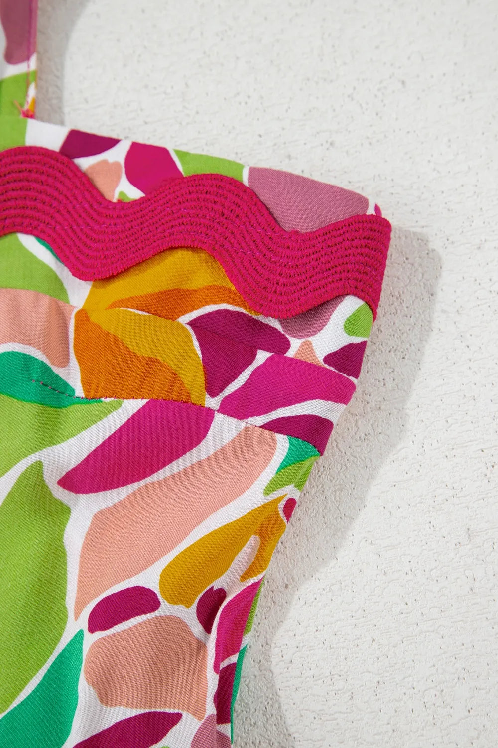 Multicolour Floral Tied Straps Ricrac Trim Maxi Dress
