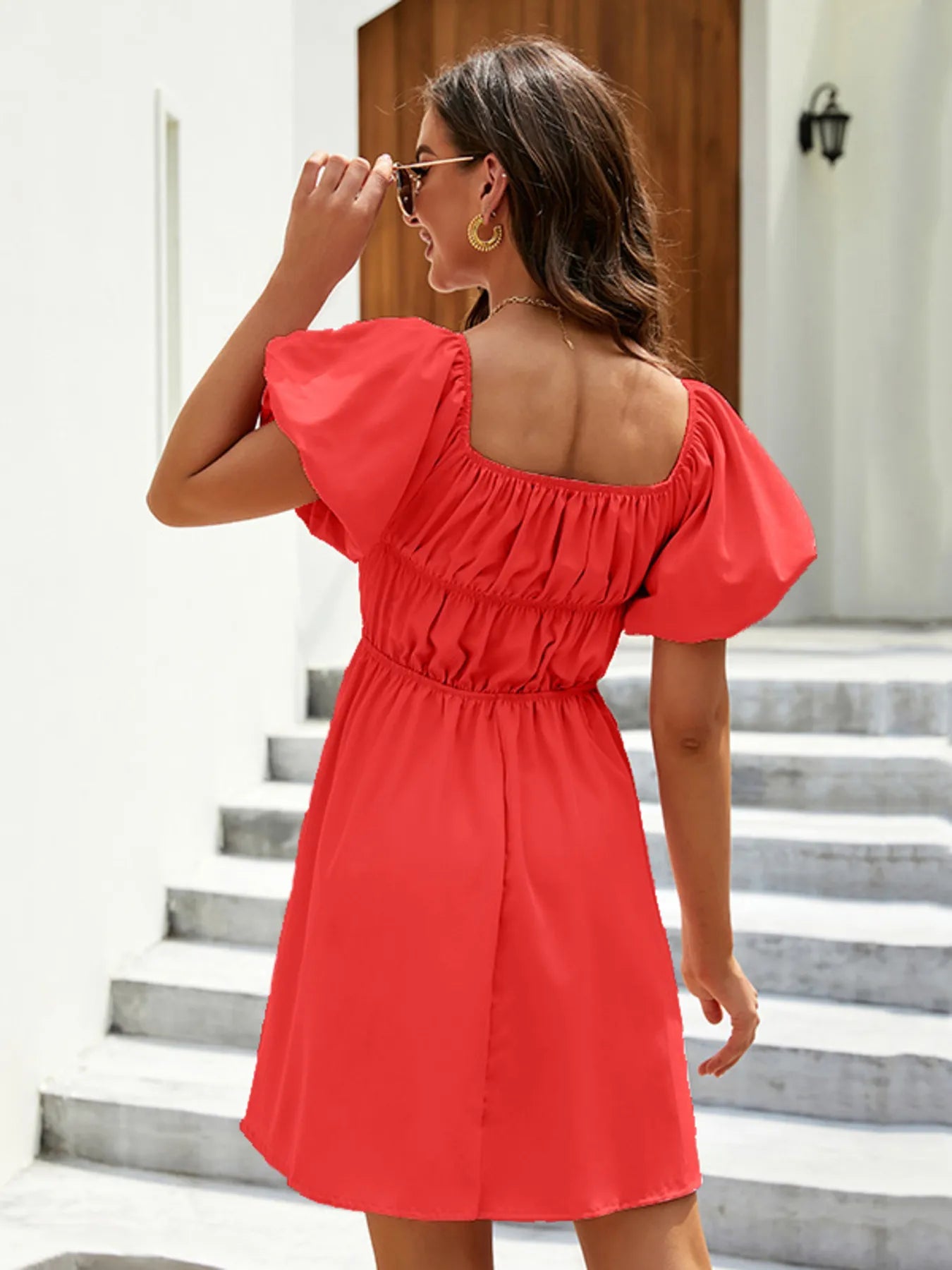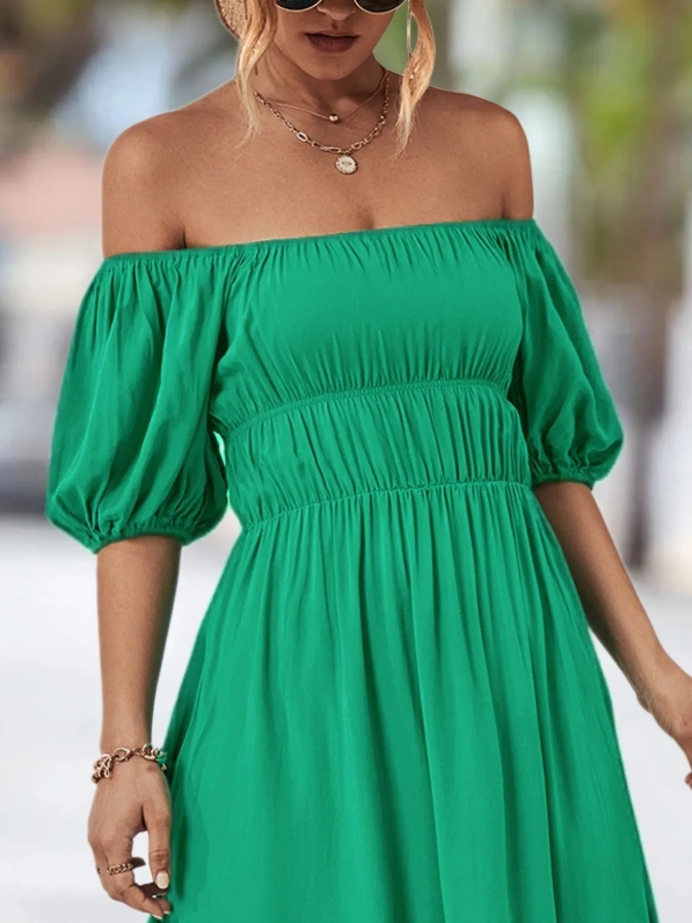 Velste Off-Shoulder Puff Sleeve Mini Dress