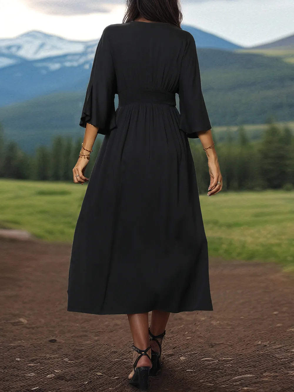 Velste Perfee Slit V-Neck Long Sleeve Midi Dress