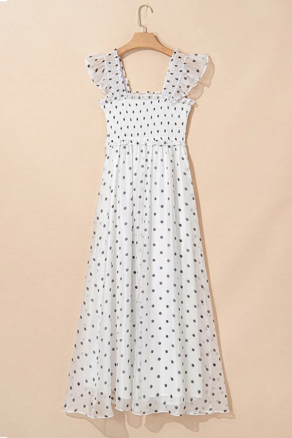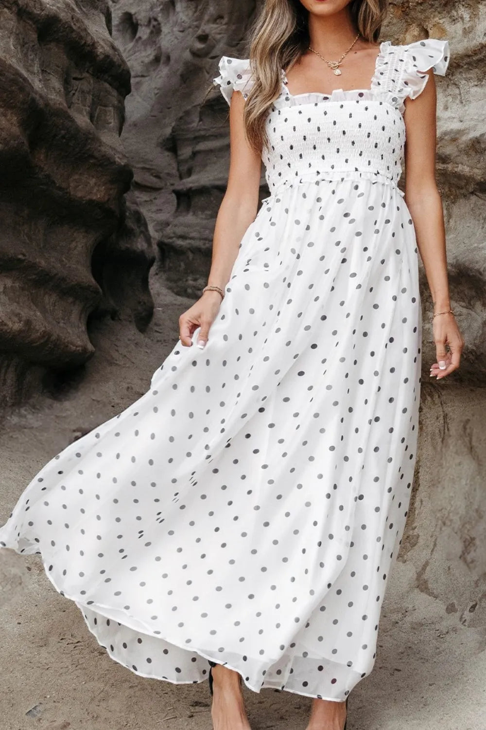 Velste Polka Dot Ruffle Sleeve Smocked Midi Dress