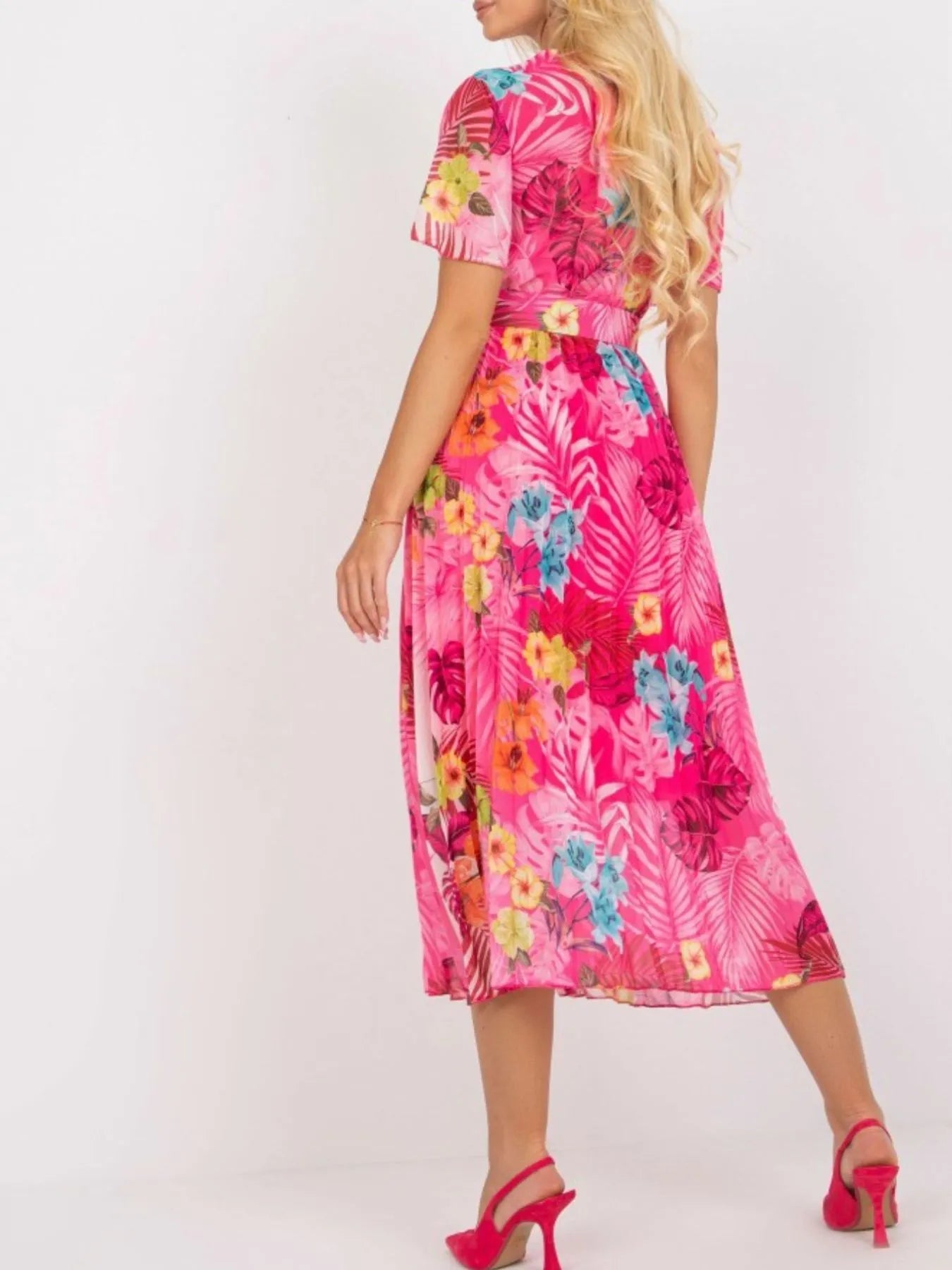 Printed Pleated Midi Wrap Dress with Belt