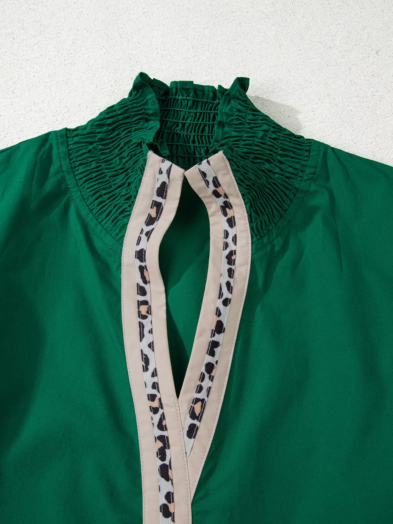 Velste Puffy Flounce Sleeve Leopard Trim V Neck Blouse
