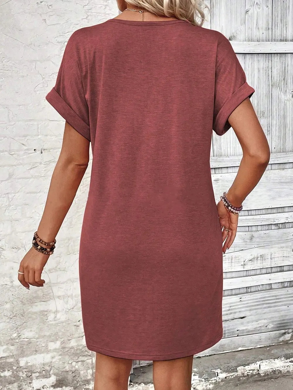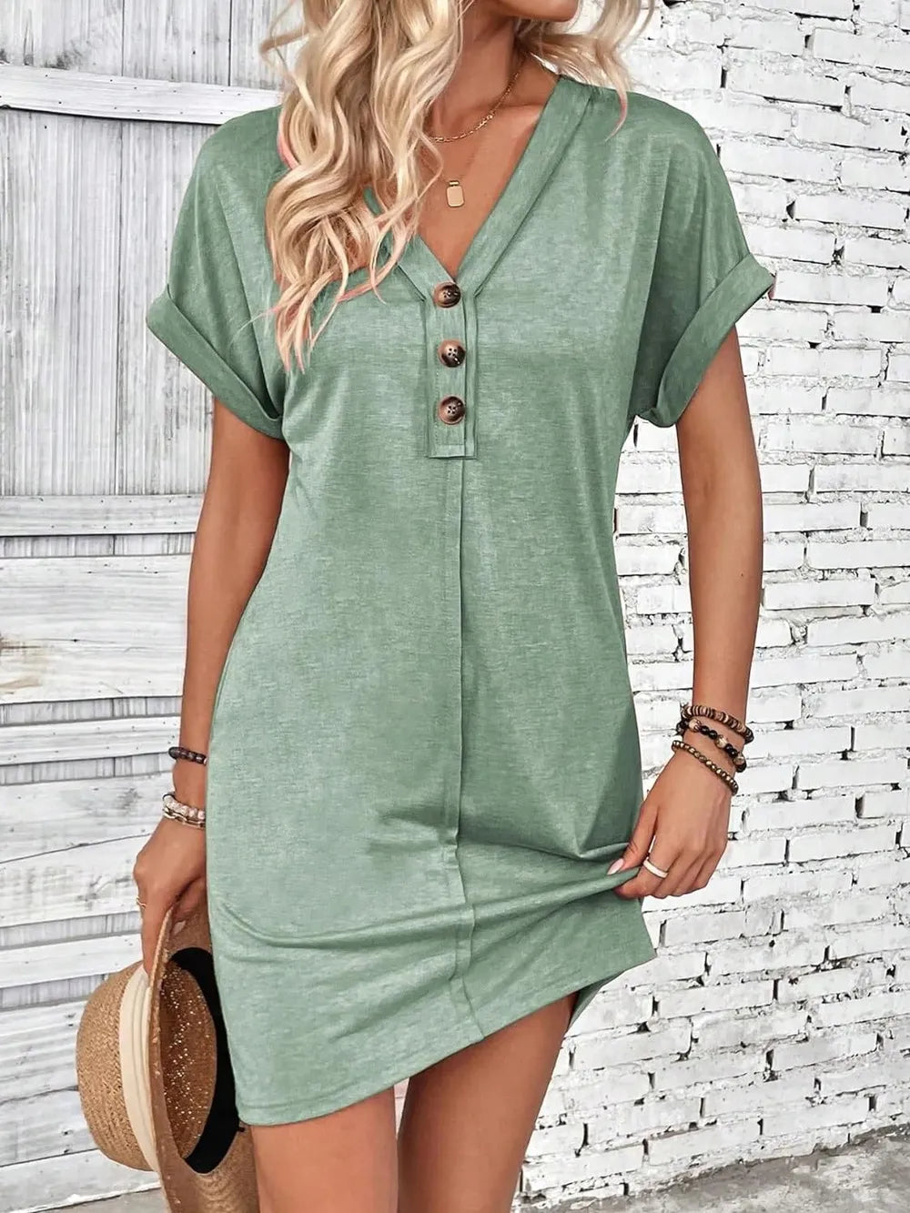 Velste Quarter Button V-Neck Short Sleeve Dress