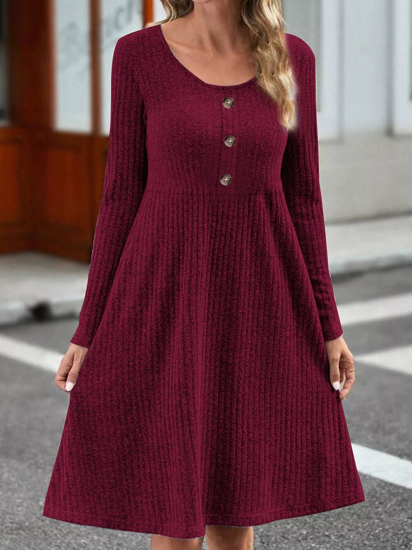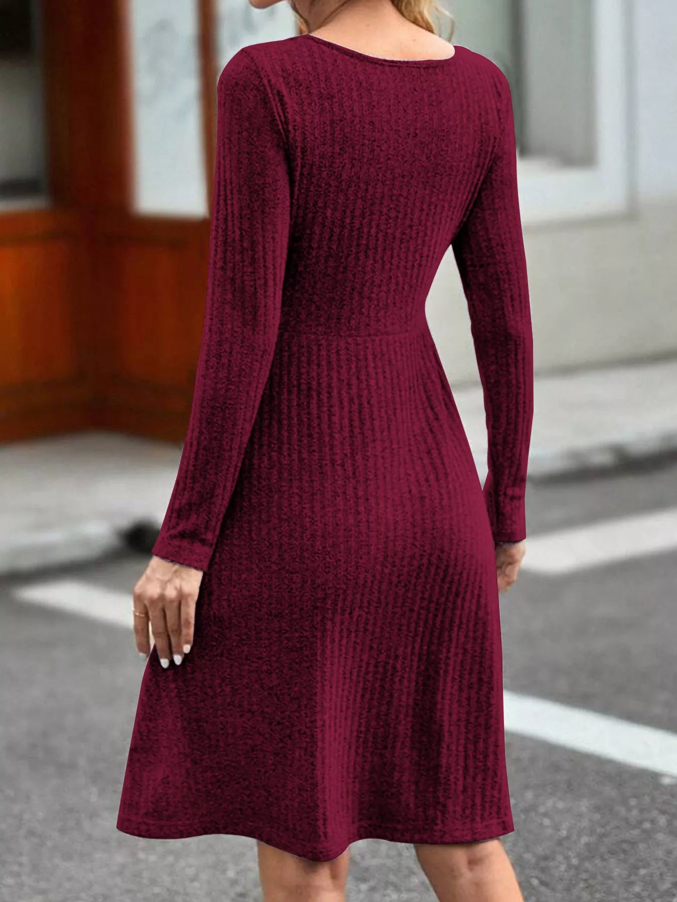 Velste Ribbed Knit Long Sleeve A-Line Dress