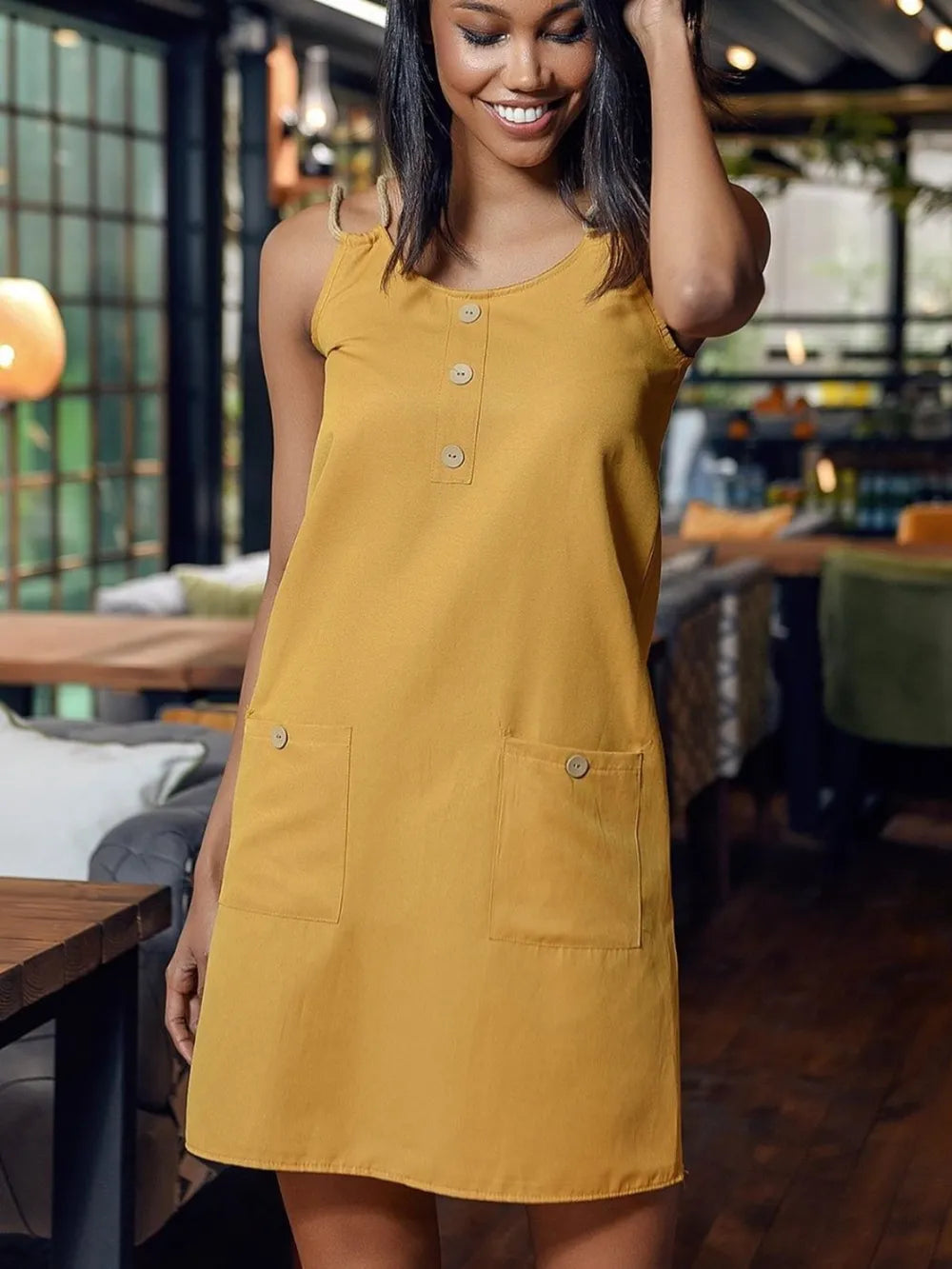 Round Neck Double Spaghetti Straps Mini Dress