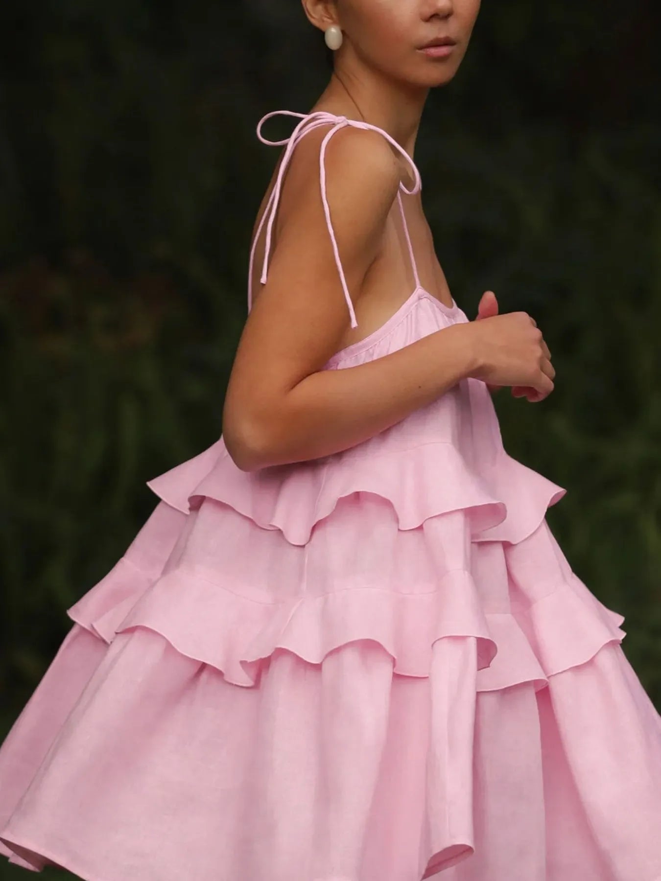 Velste Ruffle Layered Tie Shoulder Cami Dress