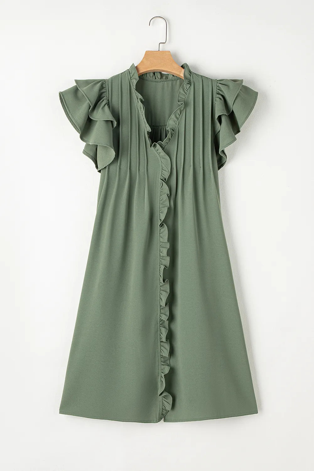 Ruffled V-Neck Cap Sleeve Mini Dress