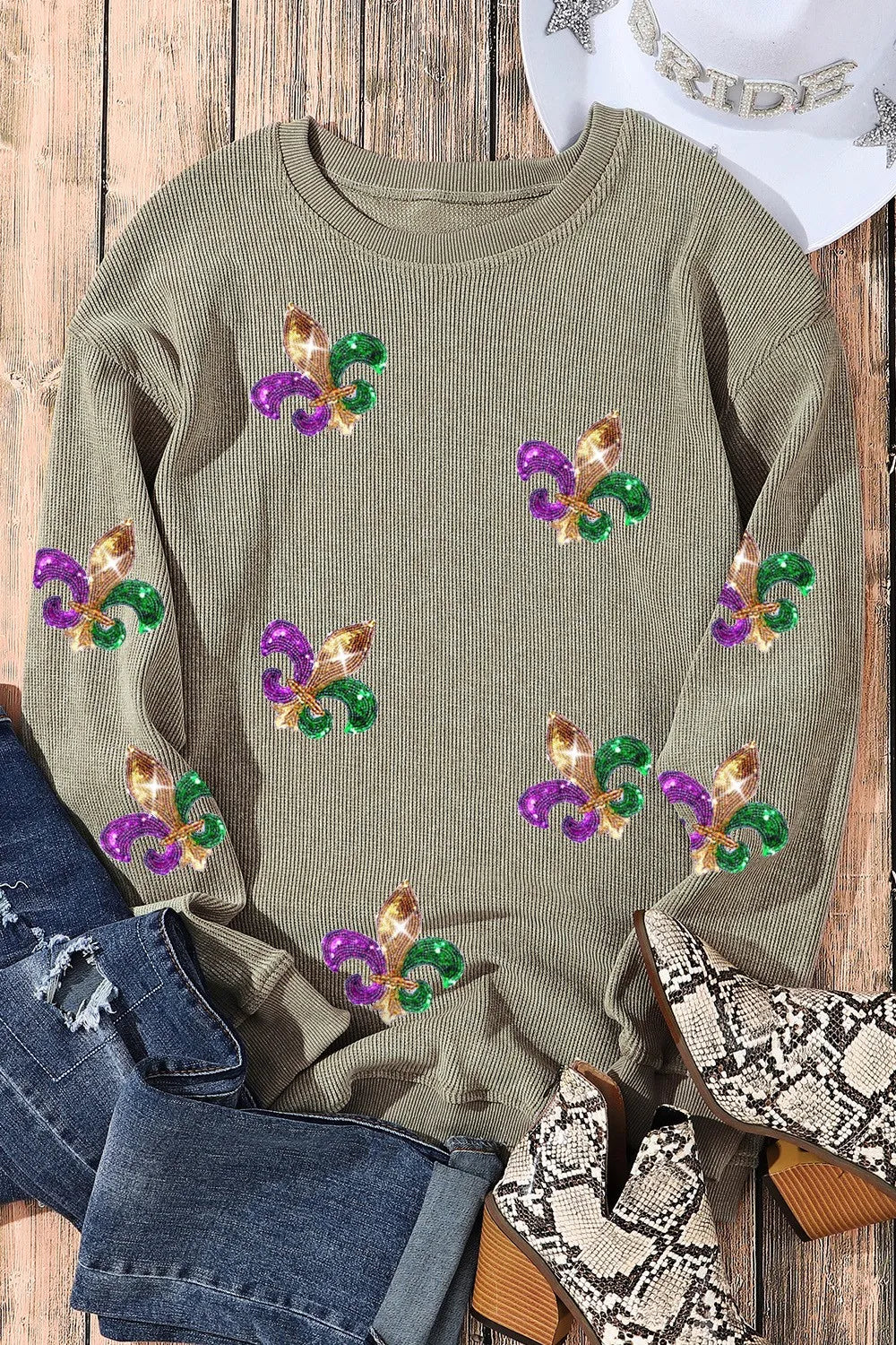 Sequin Round Neck Dropped Shoulder Sweatshirt