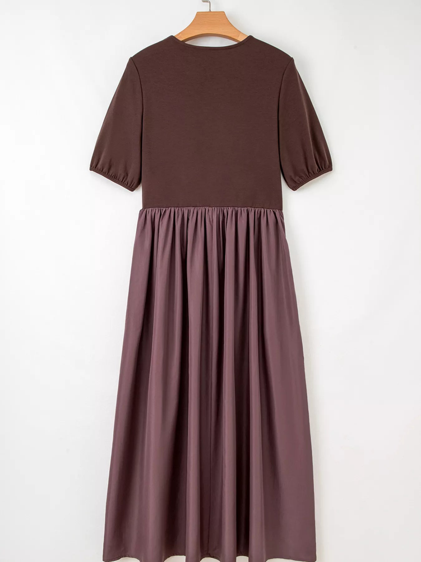 Velste Short Sleeve Knit Top Patchwork Pleated Dress
