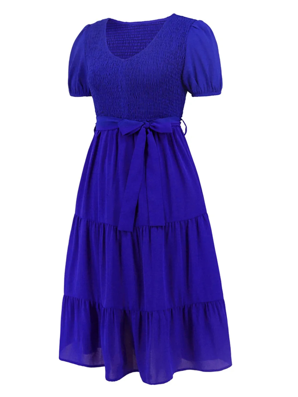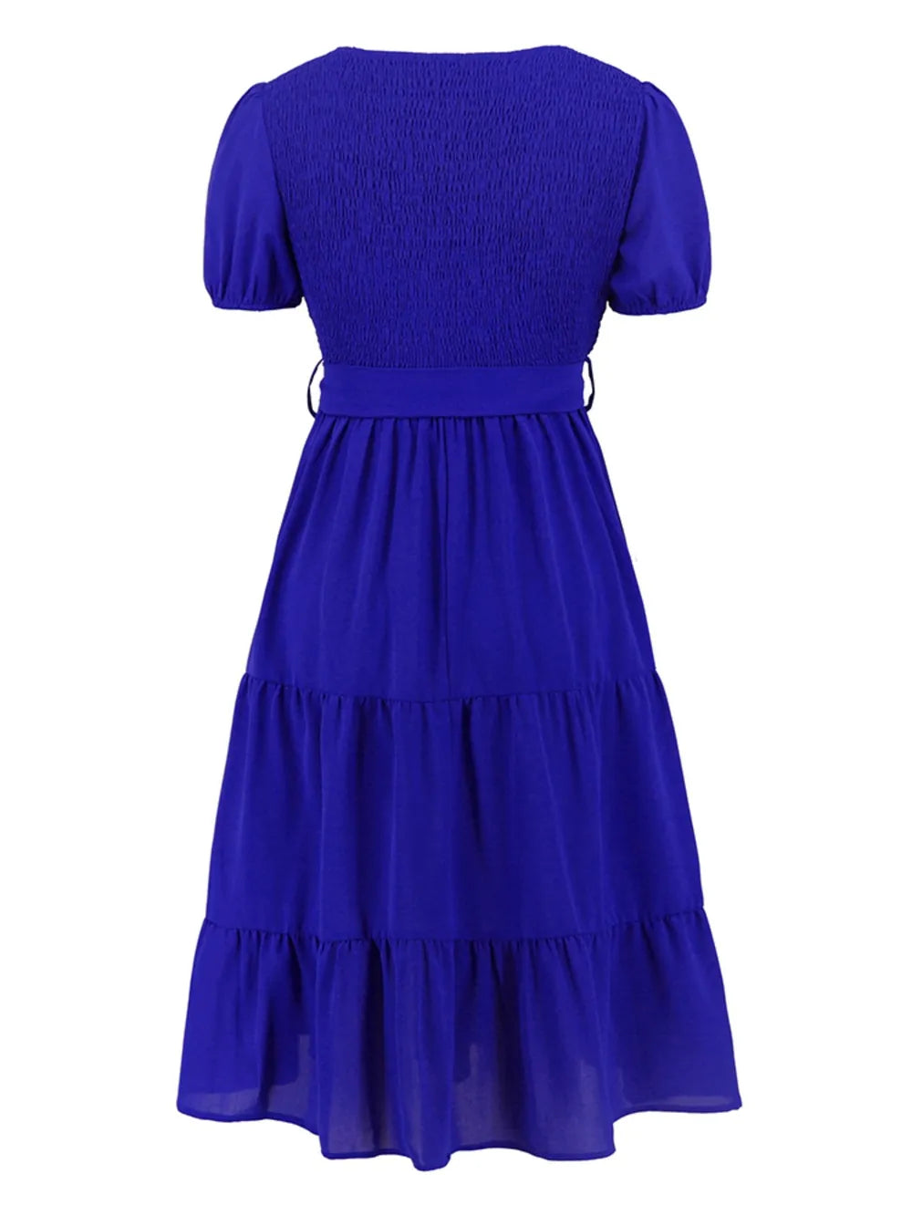 Velste Smocked Tie Front Short Sleeve Tiered Dress