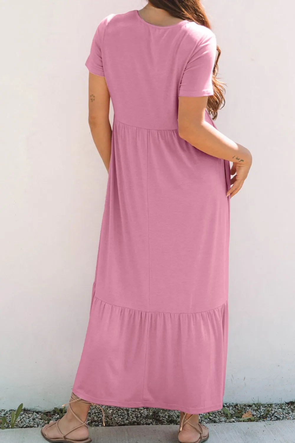 Velste Solid Color High Waist Pocketed Tee Dress