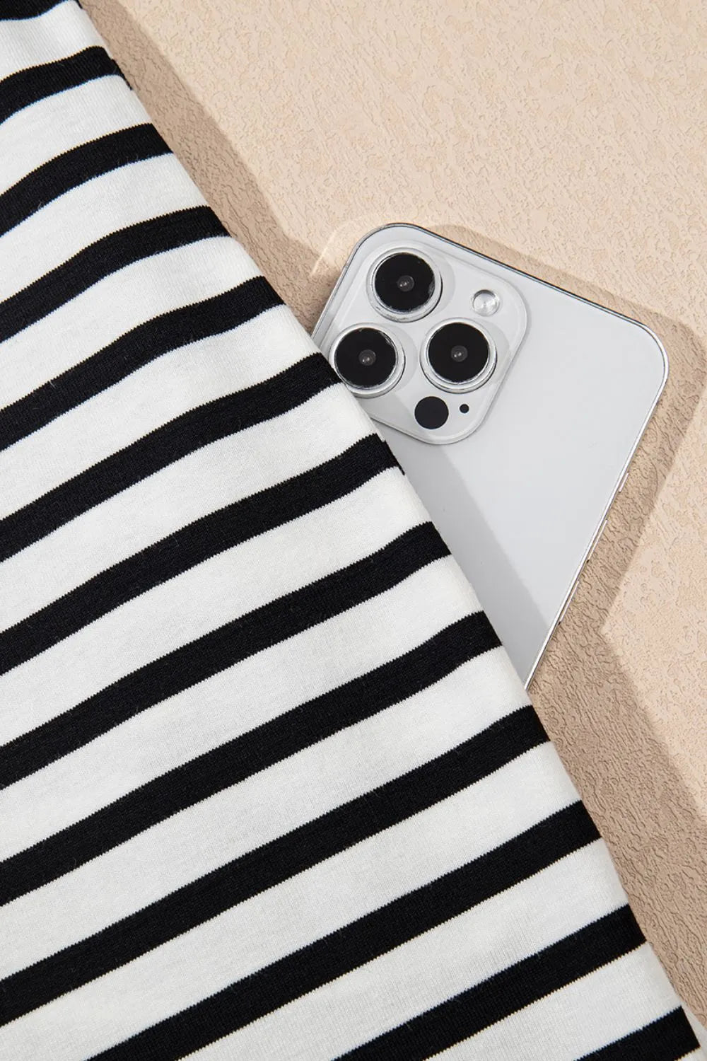 Velste Stripe Contrast V Neck Collared Puff Sleeve T Shirt Mini Dress with Pockets