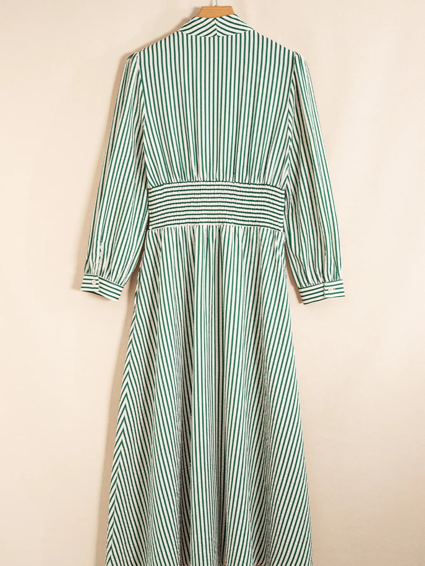 Stripe V Neck Zip Front Cinched High Waist Midi Dress