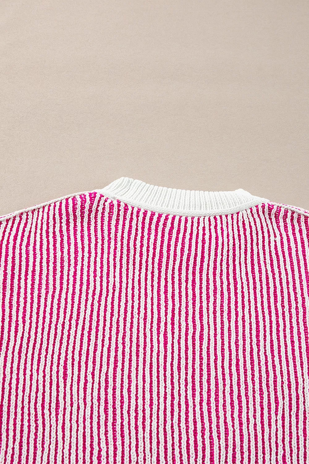 Velste Striped Textured Knit Contrast Edge Loose Sweater