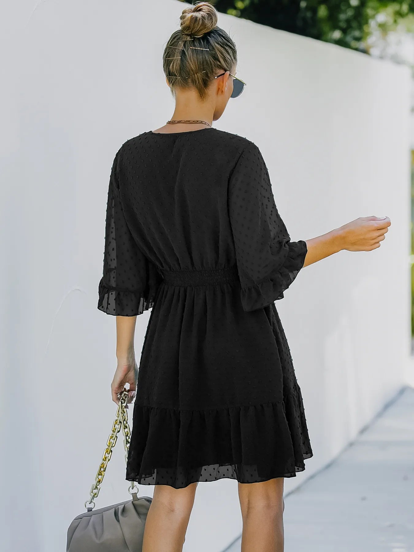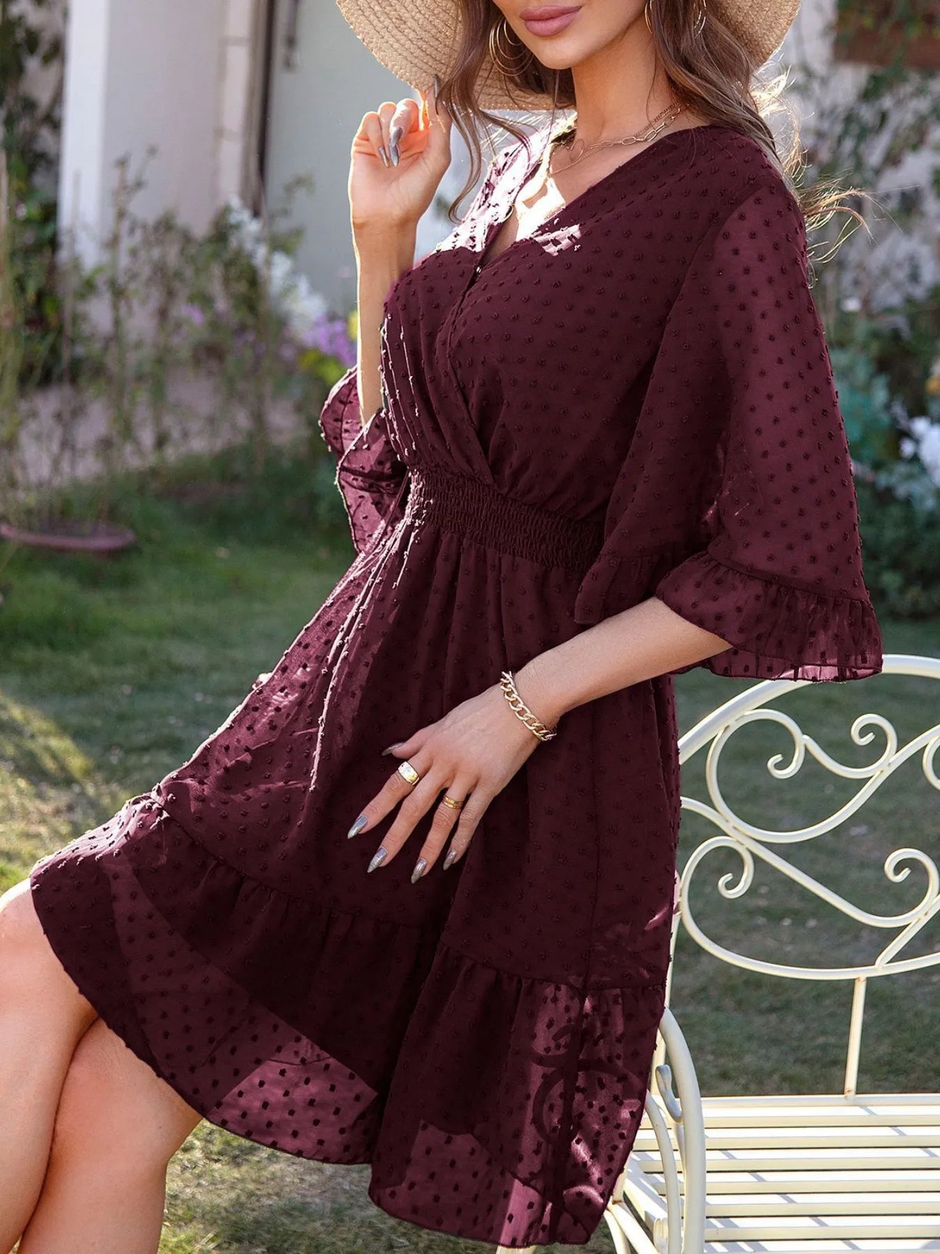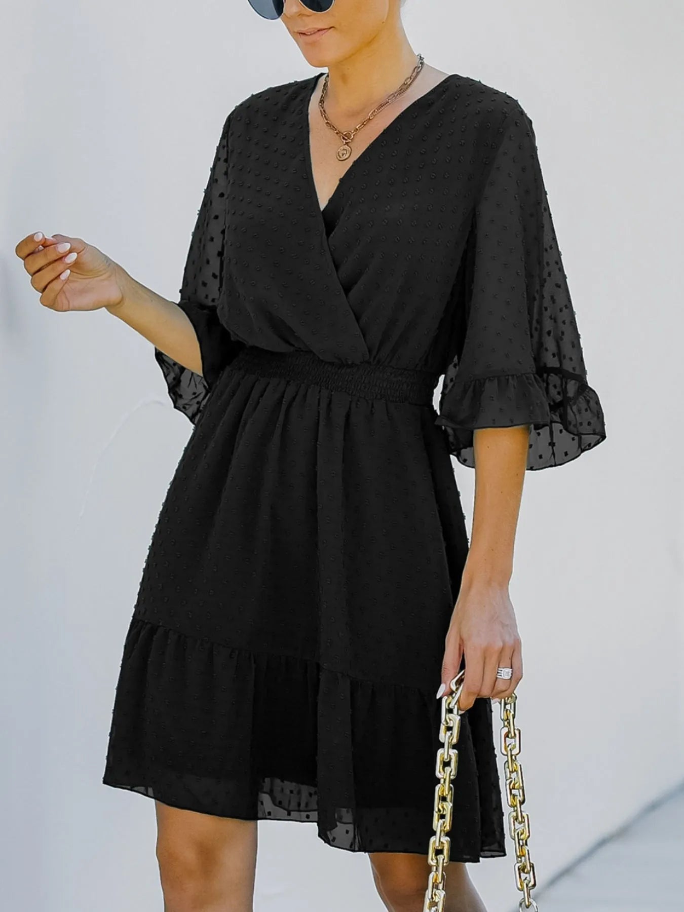 Velste Swiss Dot Flare Sleeve Wrap Mini Dress