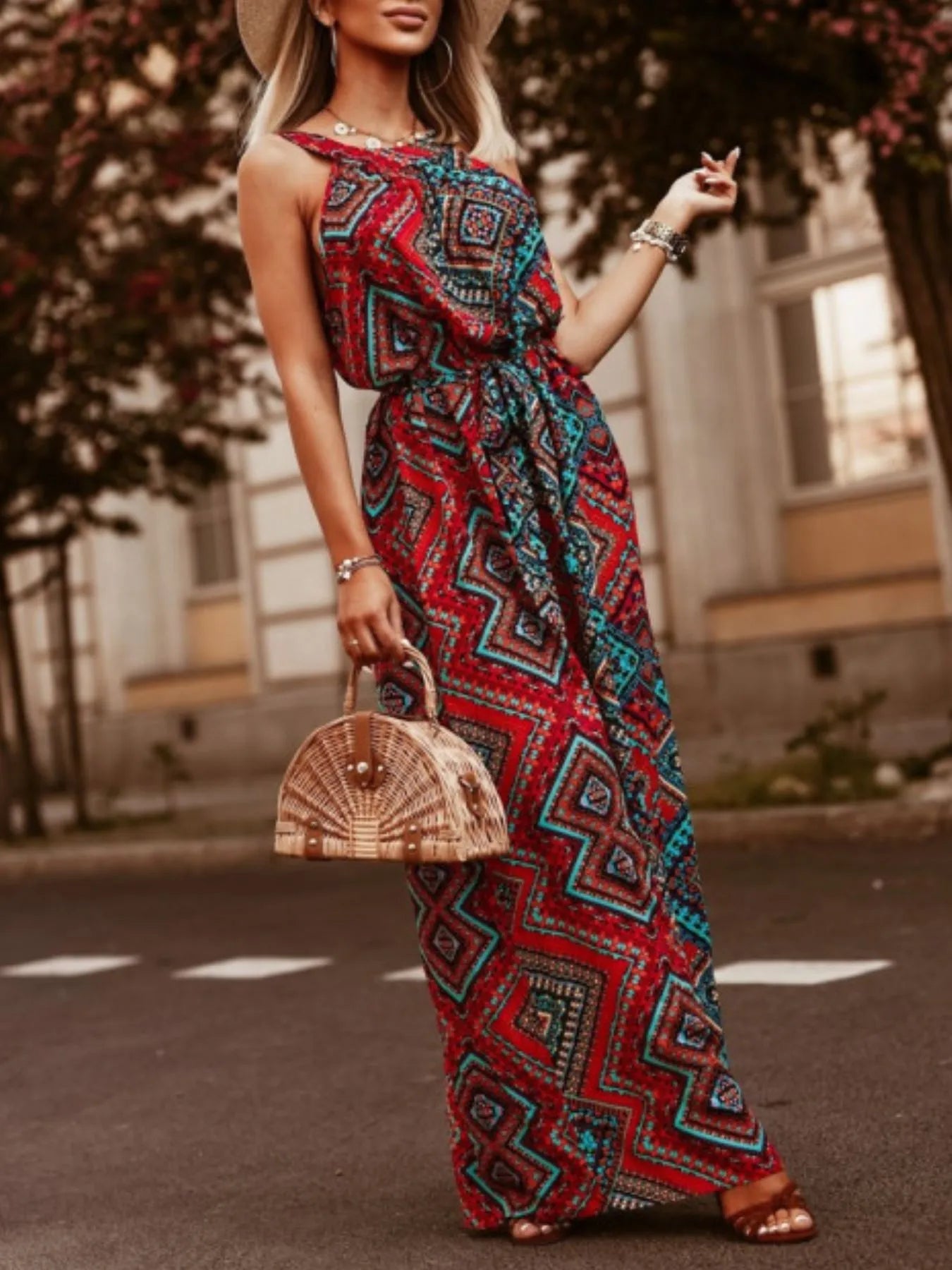 Velste Tropical Floral Halter Neck Summer Dress