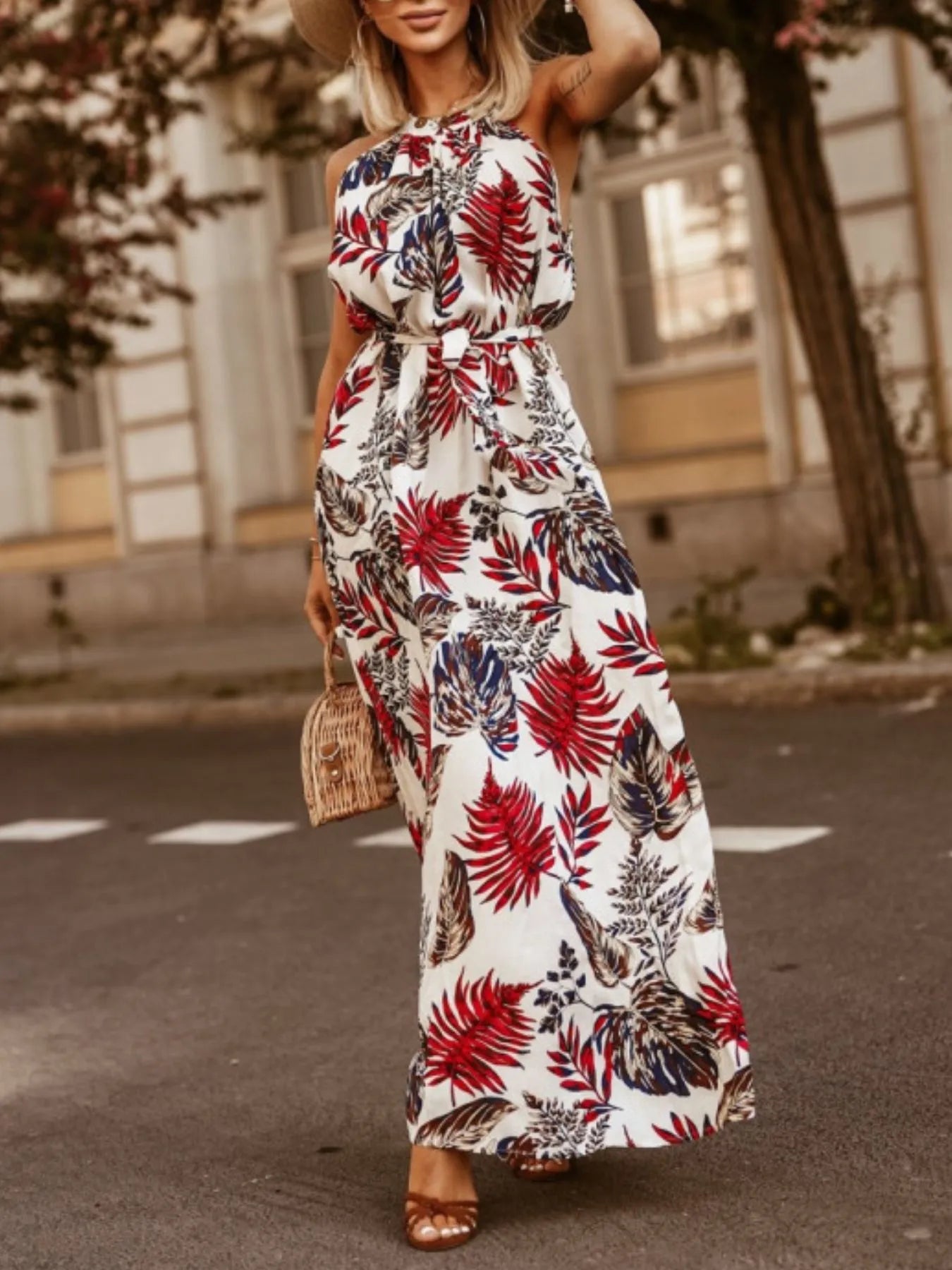 Tropical Floral Halter Neck Summer Dress