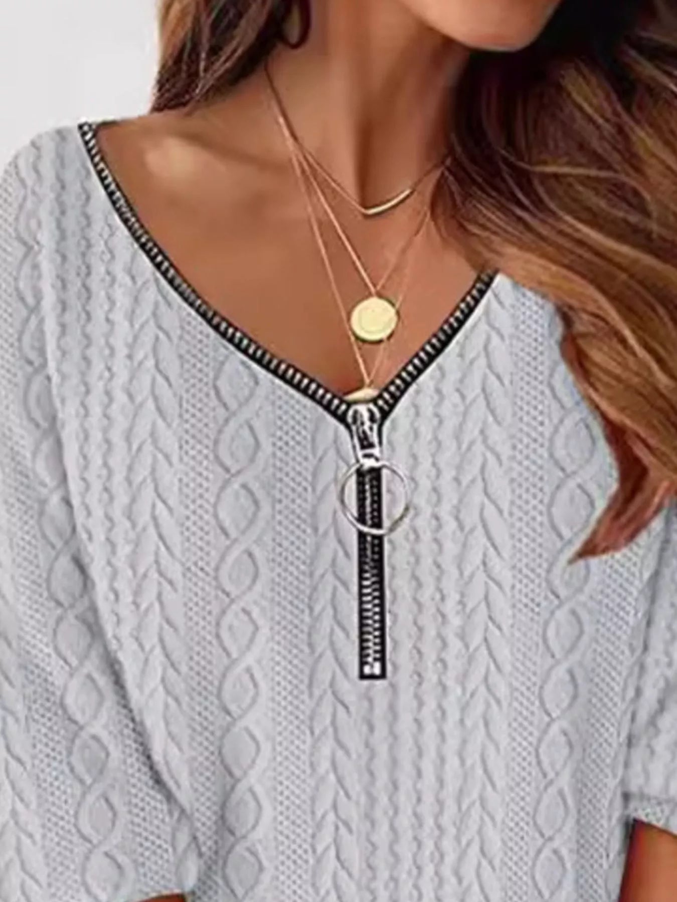 - Features:Cable-Knit,Zipper